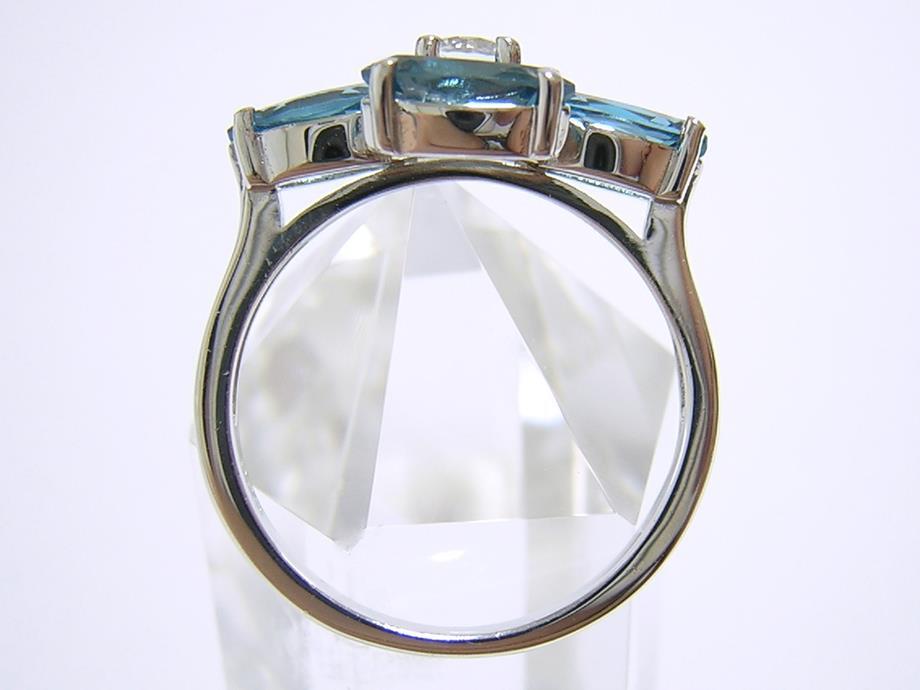 天然ブルートパーズとキュービックジルコニアを使用したデザインリングです。 ブルートパーズの大きさは約8×4mmです。 【中石】天然ブルートパーズ 【産地】アフリカ産 【処理】照射 【カット】マーキスカット 【脇石】キュービックジルコニア 【重さ】3.6g 【サイズ】16.25号 (お直しは承れません) デザイン部:縦11.5mm×横21mm 【素材】シルバー925 (14金ホワイトゴールド仕上げ) 【刻印】925 【状態】新品 ※地金部分に製作時からの傷やスレがあります。 |