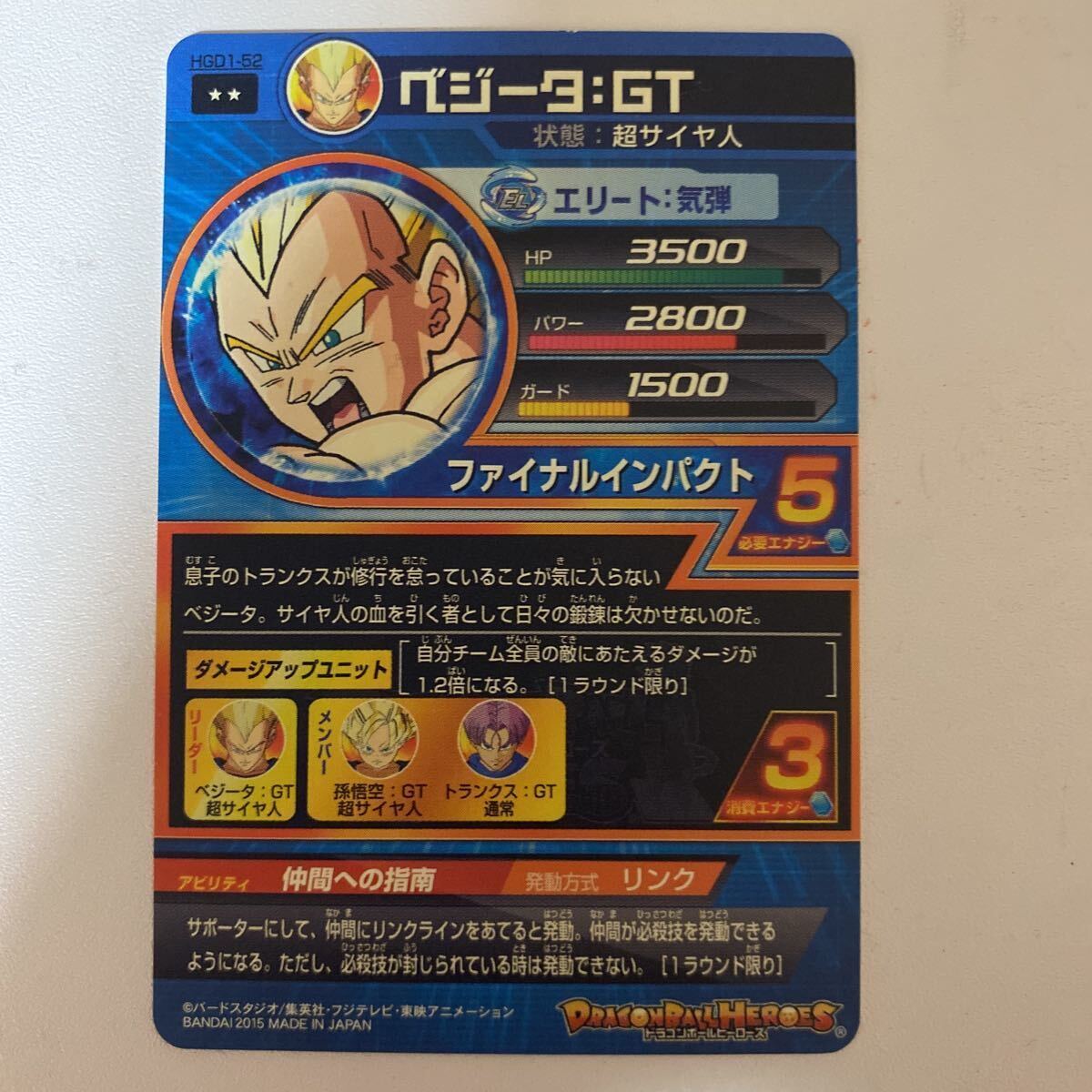 HGD1弾レア/ ベジータ:GT(超サイヤ人)/ HGD1-52/ 技:ファイナルインパクト/ ドラゴンボールヒーローズ/ レアリティ:☆☆/ 2015 BANDAI