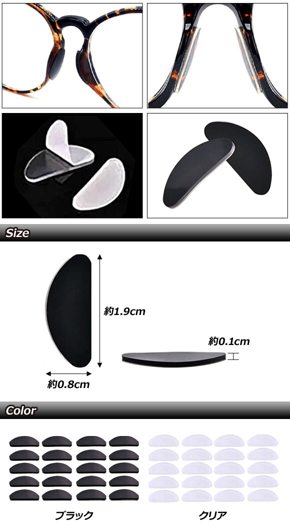 メガネ用鼻パッド クリア シリコン製 シールタイプ 入数:1セット(20個) AP-UJ0973-CL