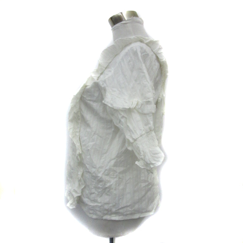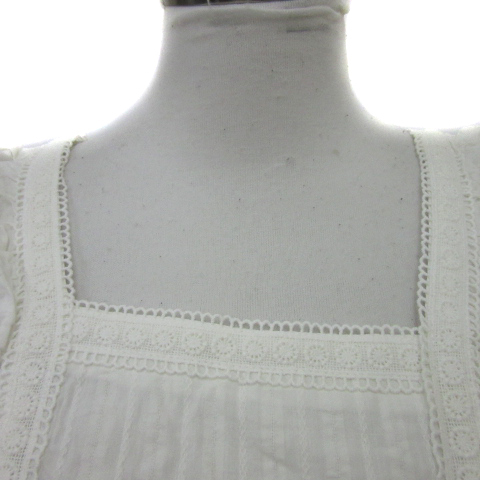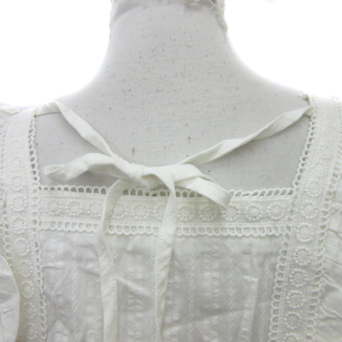 ヘザー Heather ブラウス カットソー 七分袖 ギャザースリーブ スクエアネック バックリボン フリル レース F 白 ホワイト レディース