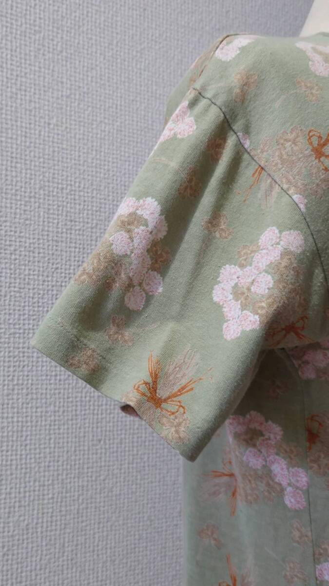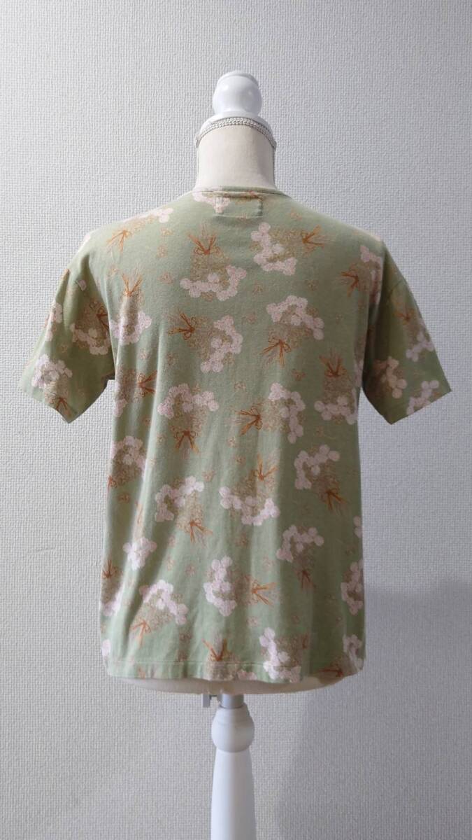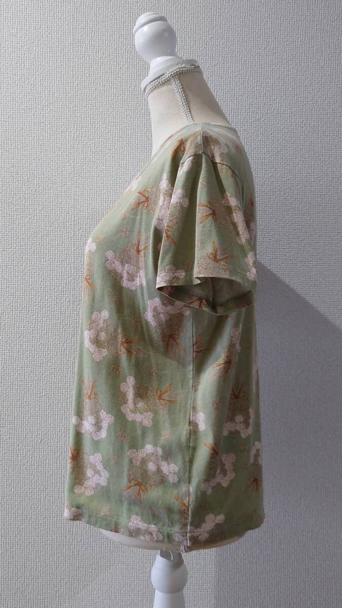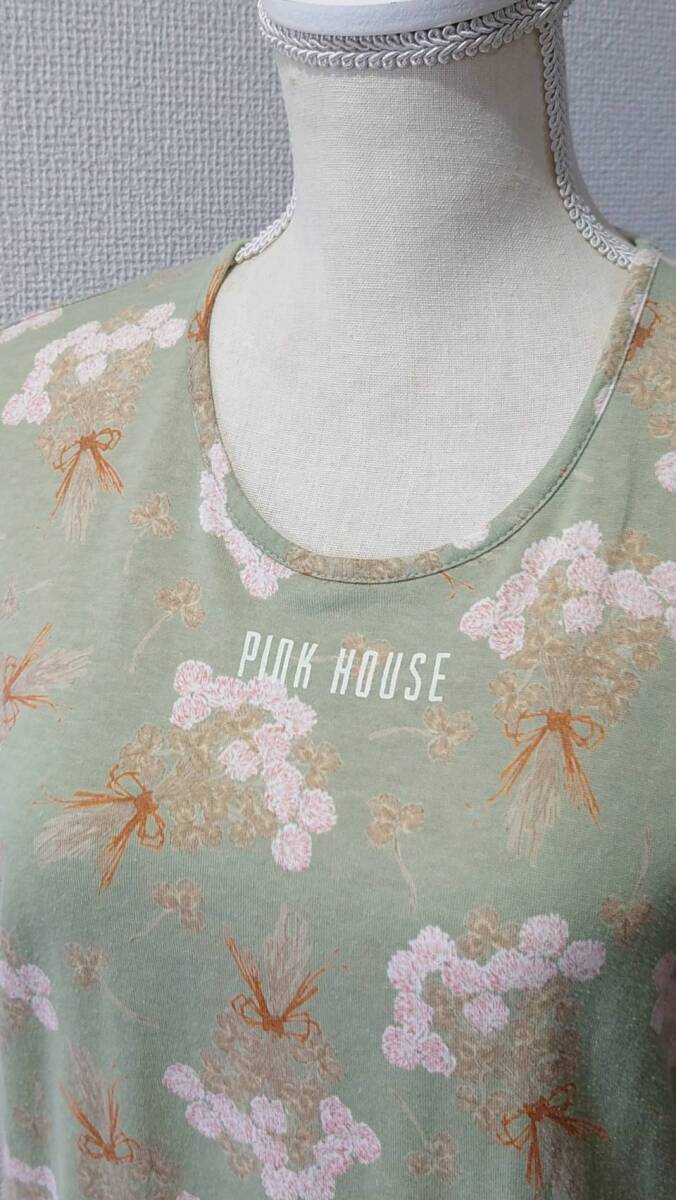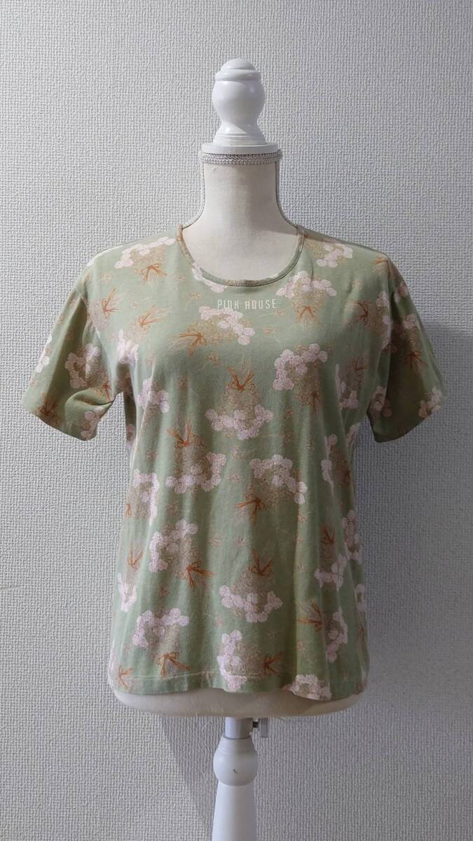 PINK HOUSE 花柄 Tシャツ ダスティーグリーン S-M相当 半袖 総柄 ピンクハウス