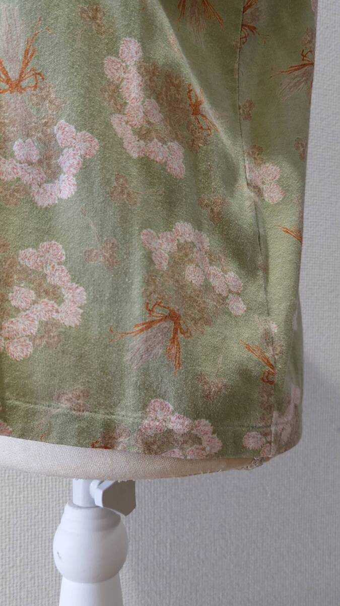 90’s PINK HOUSE 花柄 Tシャツ ダスティーグリーン S-M相当 半袖 総柄 ピンクハウス