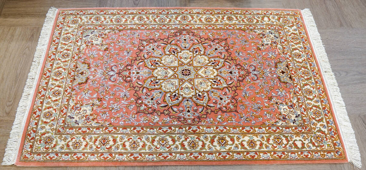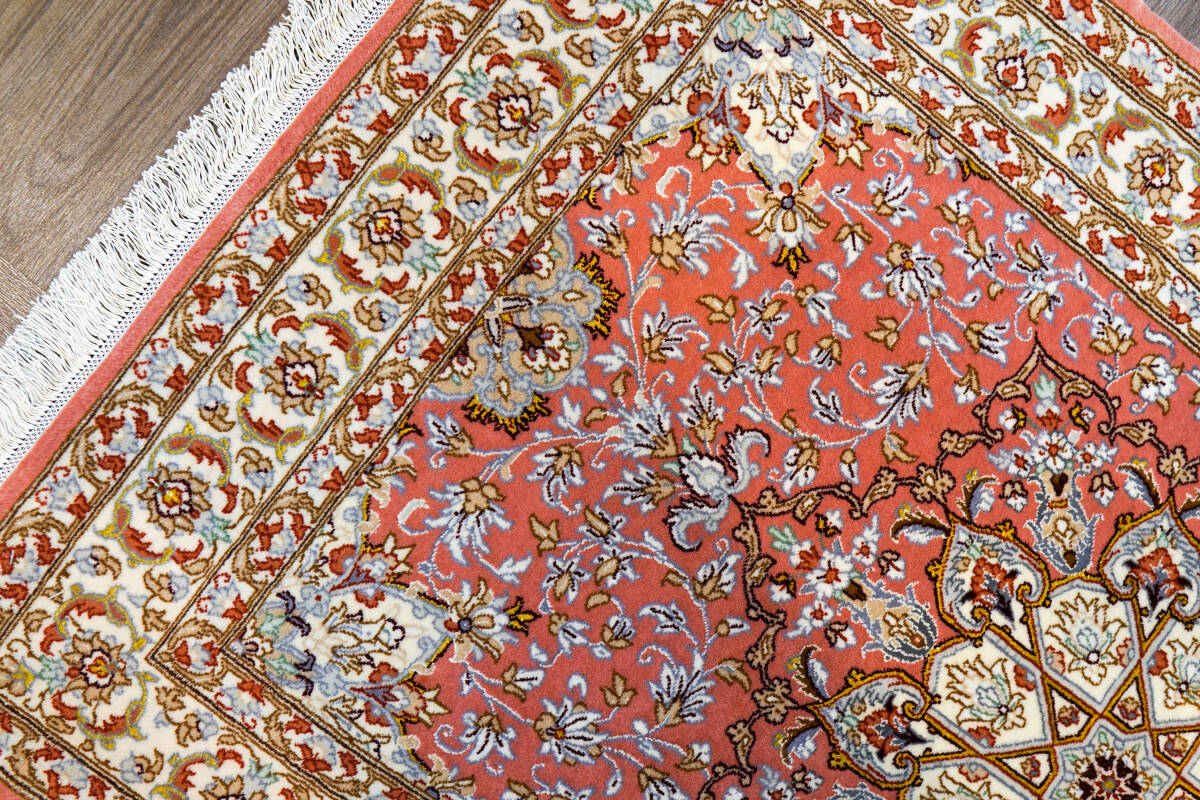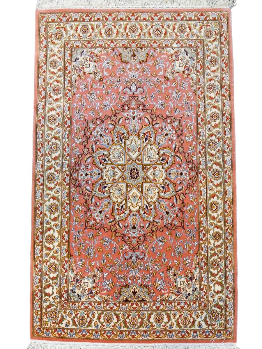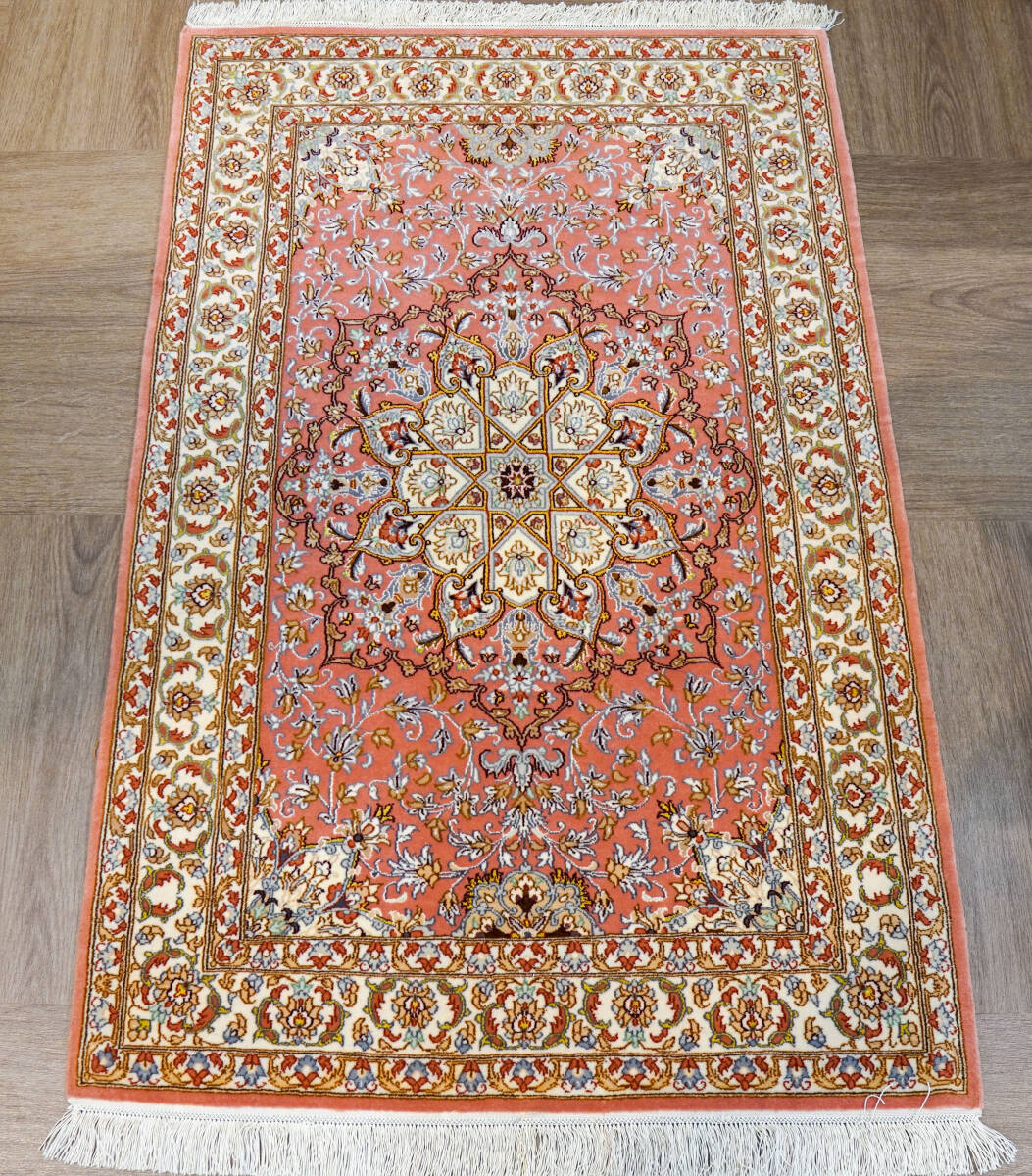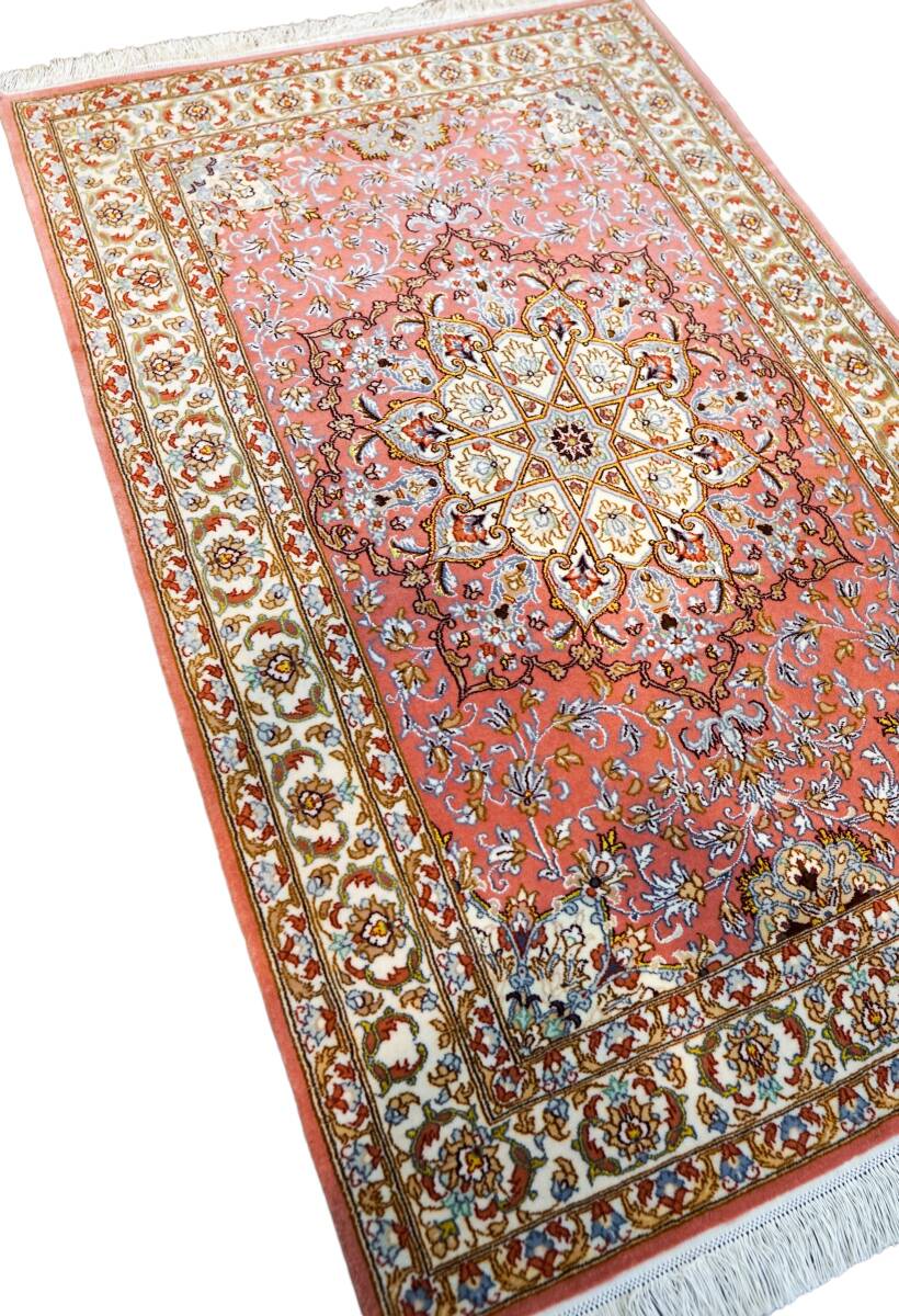 130×83cm ペルシャ手織り絨毯 イスファハン産  証明書付