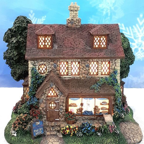 トーマスキンケード【 イギリス 田舎町の洋菓子店 ジオラマ ライト】 フィギュアおまけ 証明書 アンティーク 陶器 ケーキ屋 ランプ