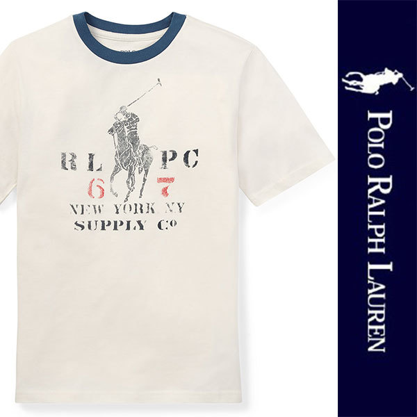 新品 POLO RALPH LAUREN BOYS S/S T-SHIRT ポロ ラルフローレン ボーイズ 半袖Tシャツ ホワイト ネイビー ビッグポニー XL 正規品 (148)