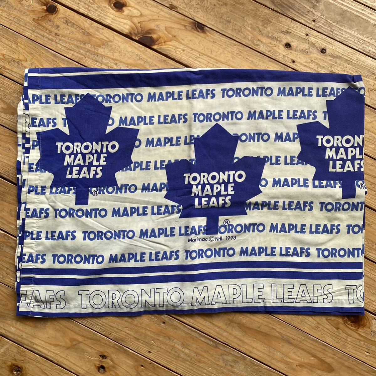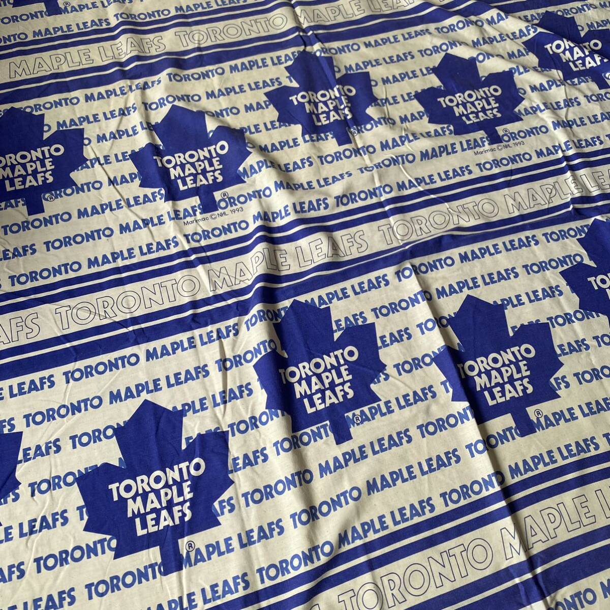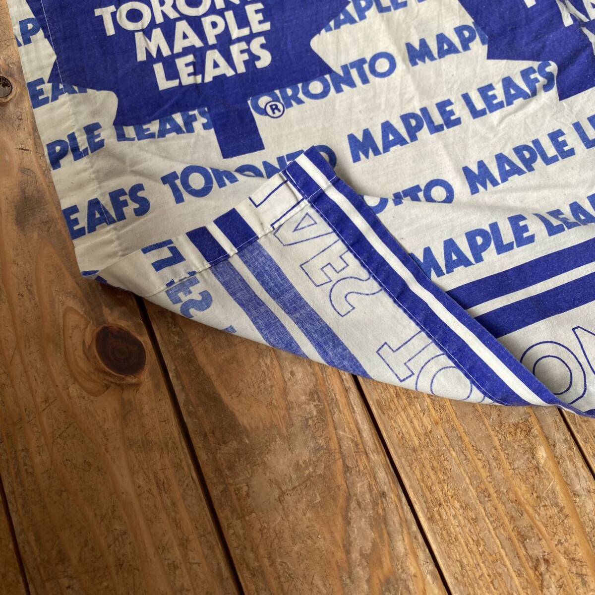アメリカで購入したセカンドハンド(古着)の、 トロントメープルリーフスのベッドシーツです。
