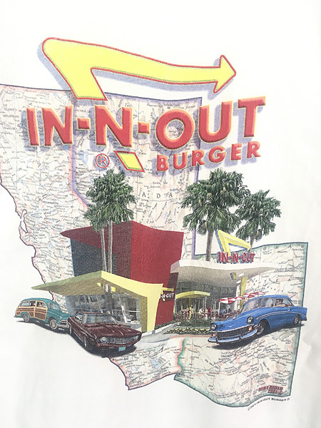 アメリカのファーストフードチェーンのネオンボード&フォト風グラフィックプリントロンT。