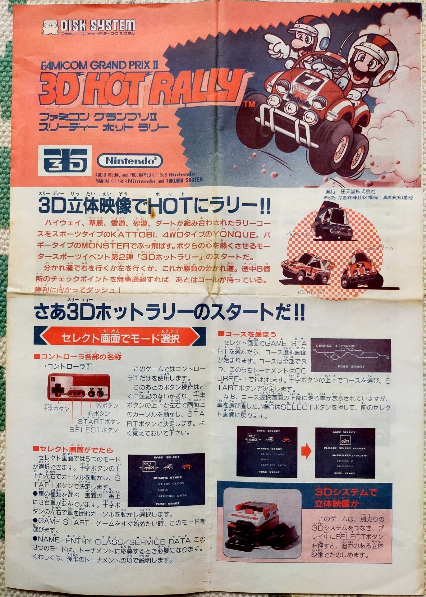 3Dホットラリー ディスクソフトの取扱説明書 のみです。