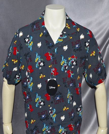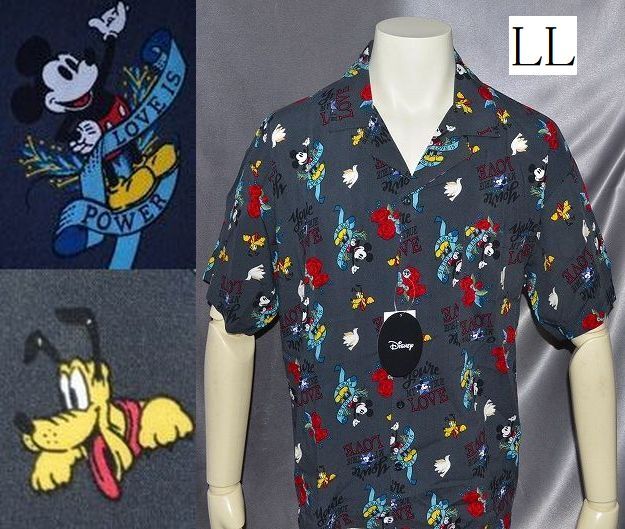新品 LL ディズニー ミッキーマウス シャツ アロハシャツ プルート レーヨン100%