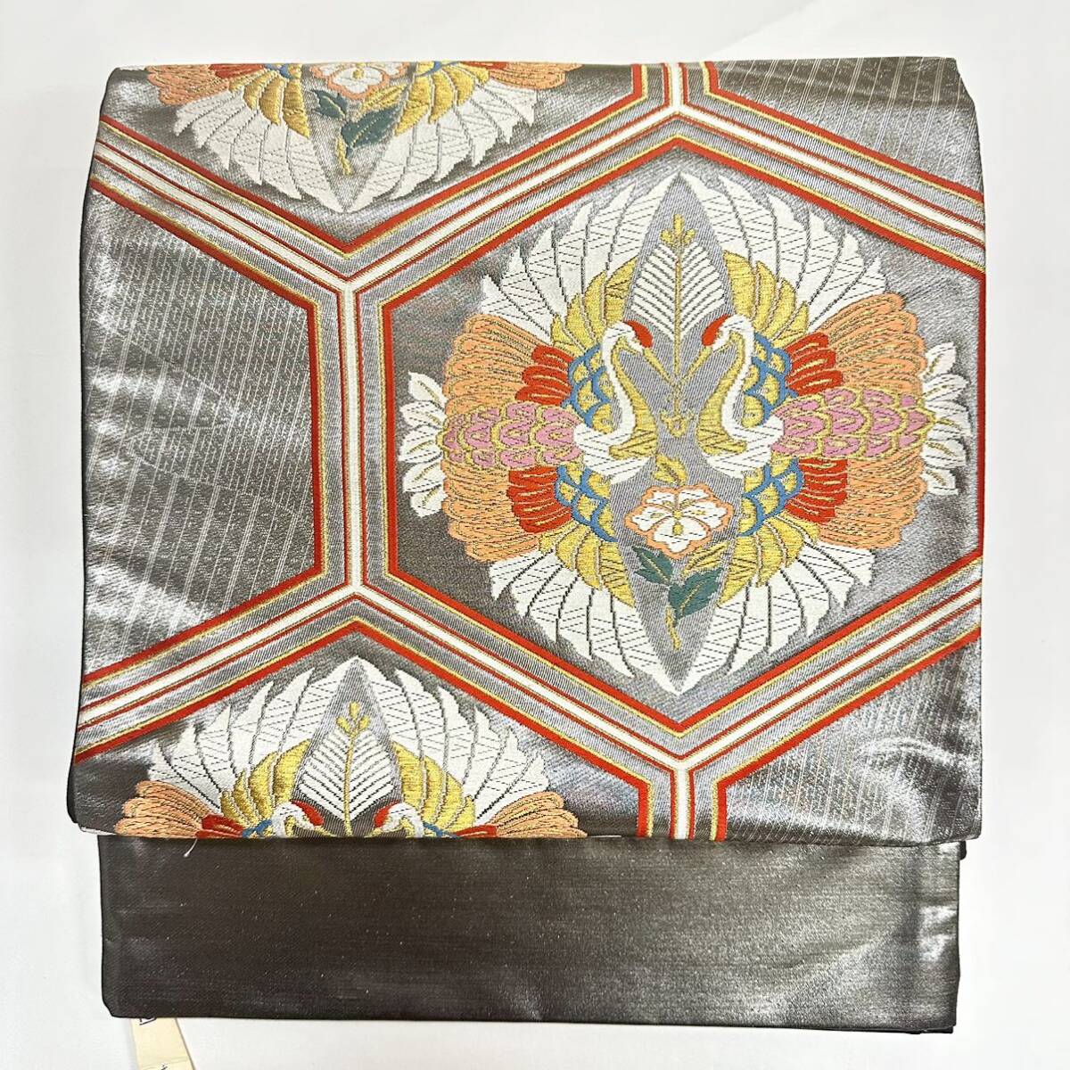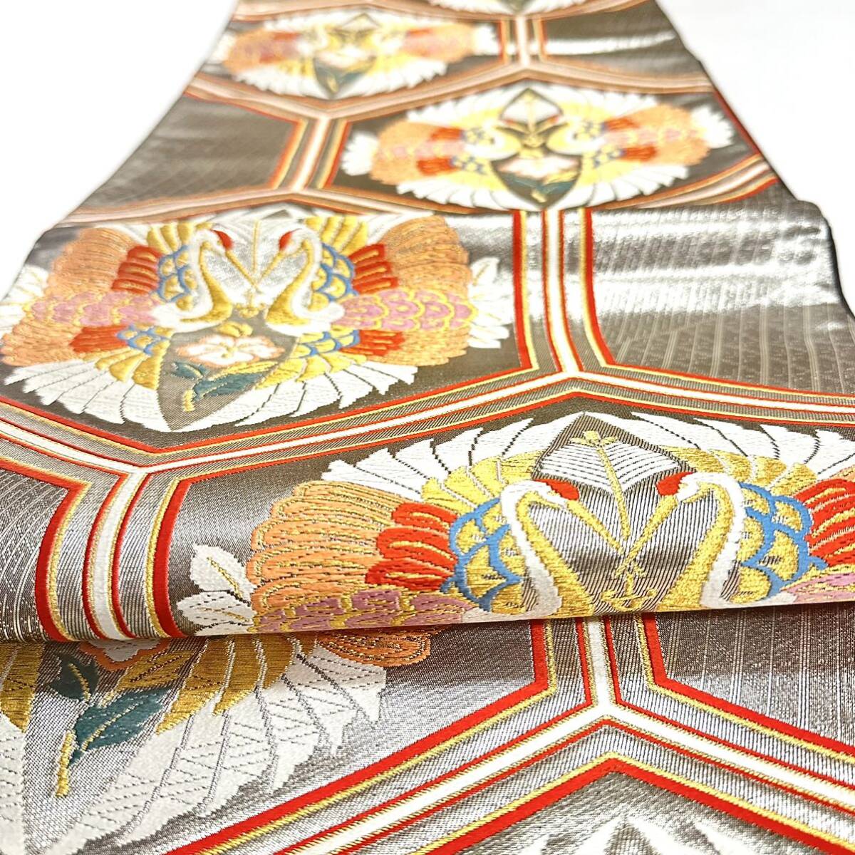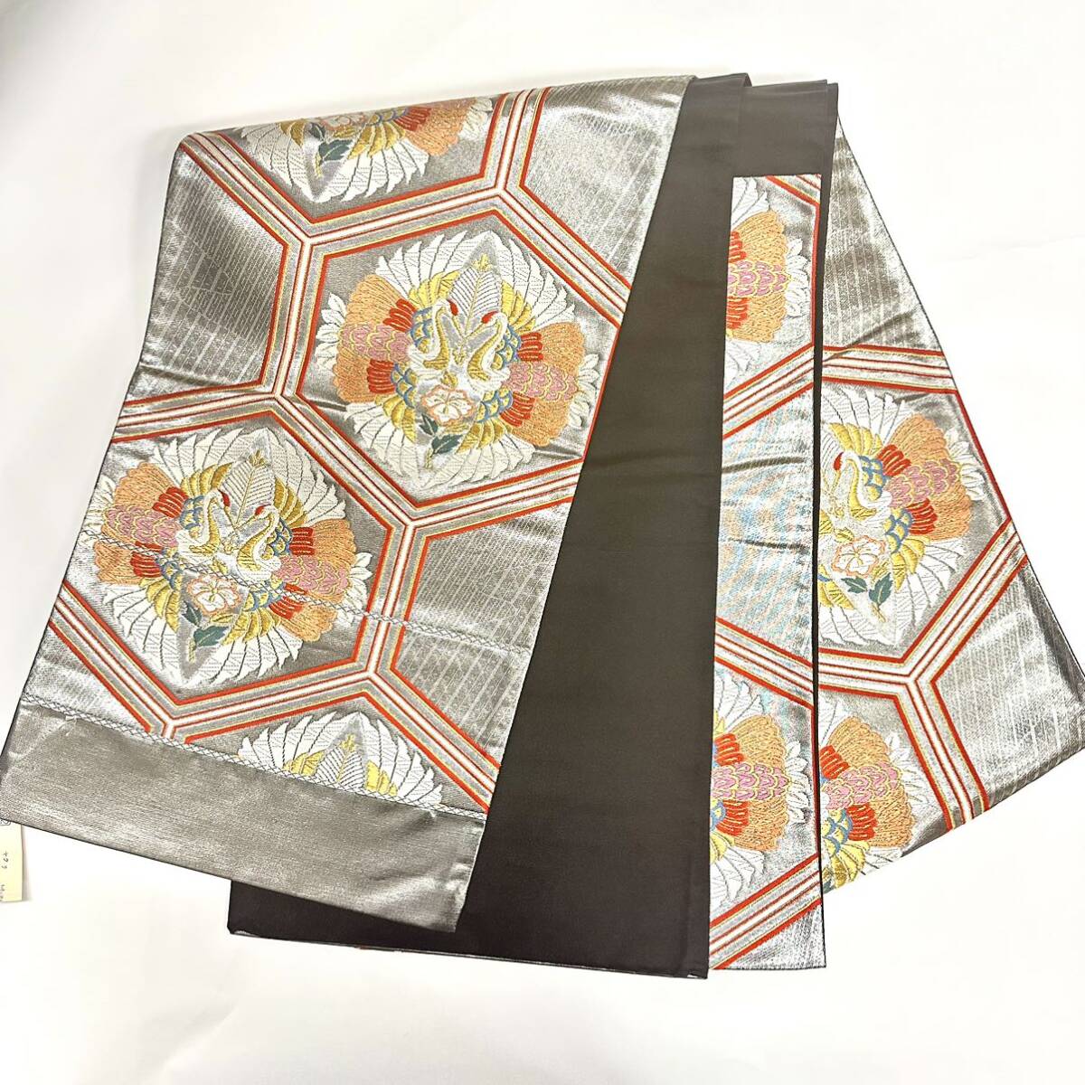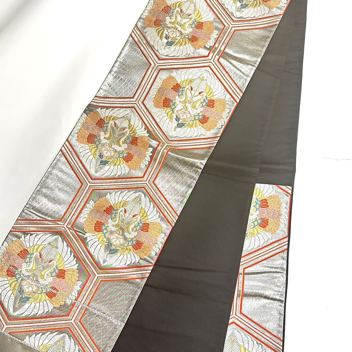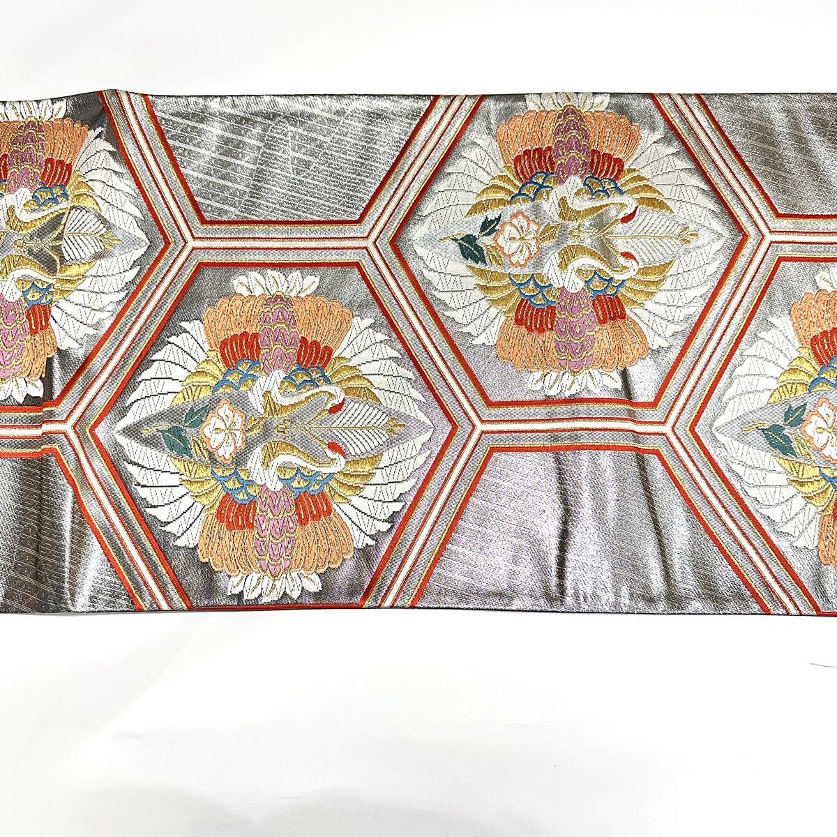 【七福】c90 正絹 袋帯 六通 太鼓柄 フォーマル 金糸 銀糸 豪華 古典柄 正倉院紋様 長さ 約450cm 留袖 訪問着 色無地