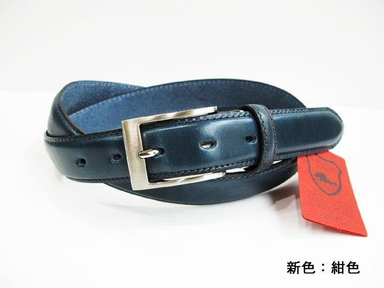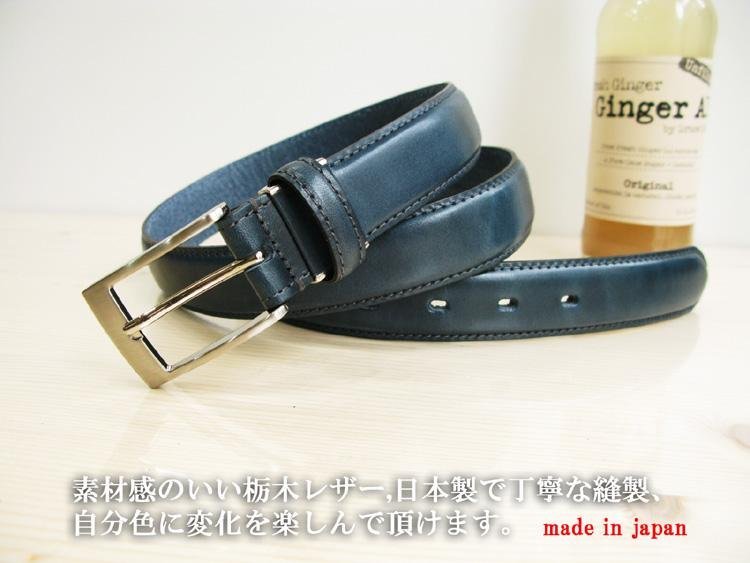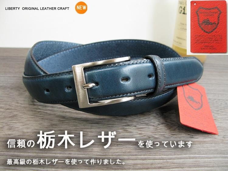 日本製栃木レザー最強本革ベルト 紺色;J128-5:新品;ビジネス メンズ 本革 フリーサイズ サイズ調節可能 幅30mm
