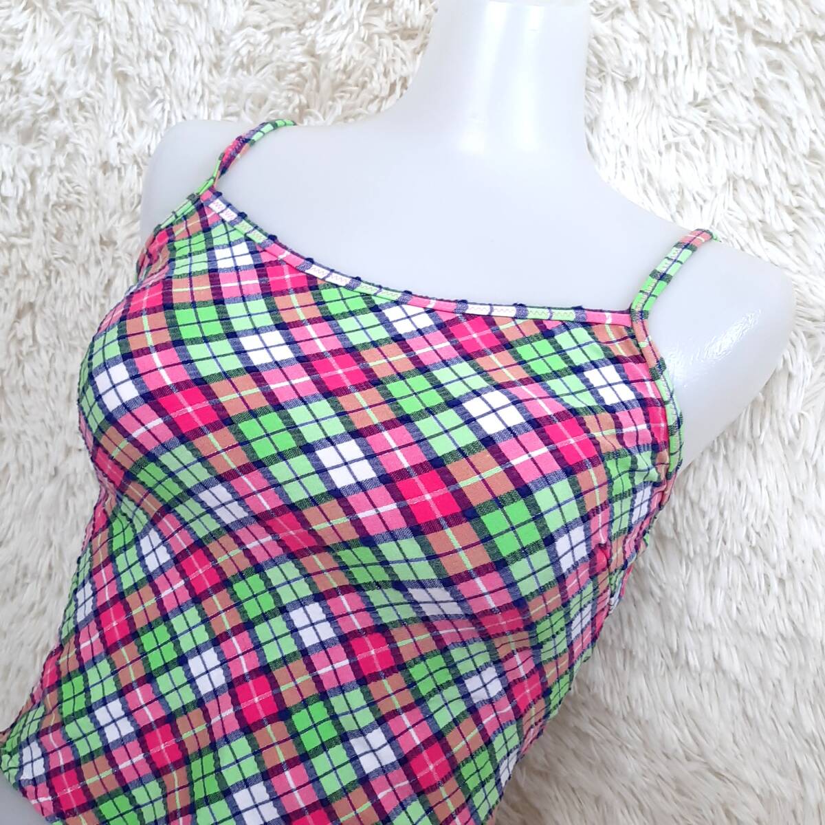 匿名配送★美品 チェック柄 お洋服素材 タンキニ ビキニ 水着 ピンク 9M キ
