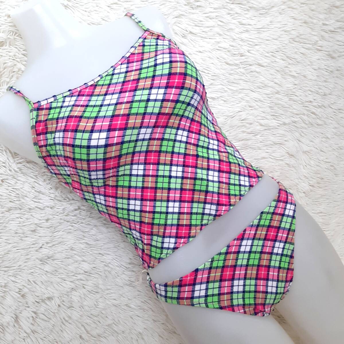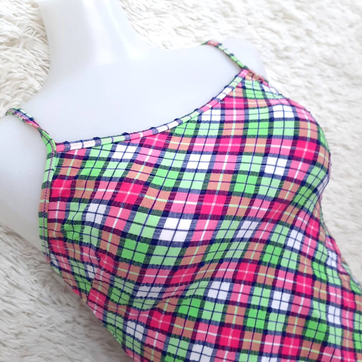 匿名配送★美品 チェック柄 お洋服素材 タンキニ ビキニ 水着 ピンク 9M キ