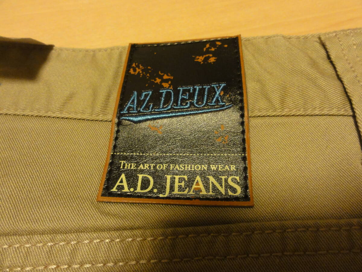特大サイズ取扱いブランド AZ DEUX JEANS のカーキ系地・高級7分丈デザインジーンズタイプ未使用品タグ付きのお洒落でかっこいいお品です。