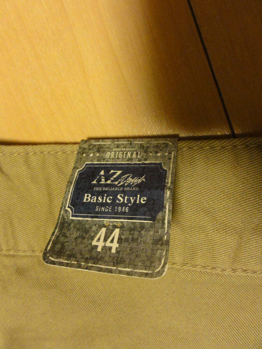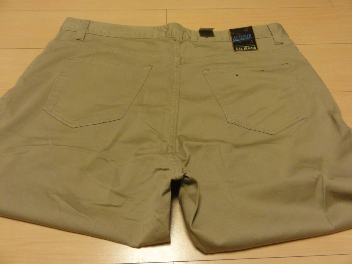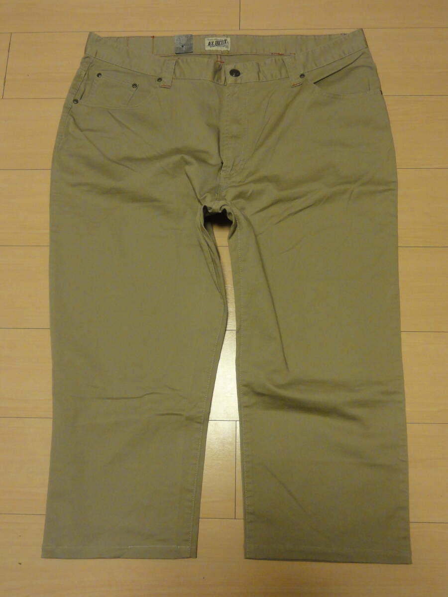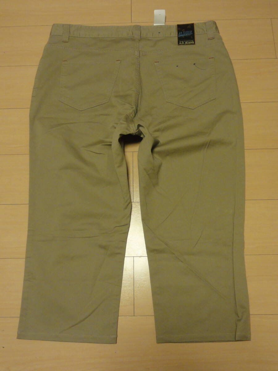 格安超特大(44インチ・W110cm位)未使用タグ付き・AZ DEUX JEANS・カーキ系地・高級7分丈デザインジーンズ
