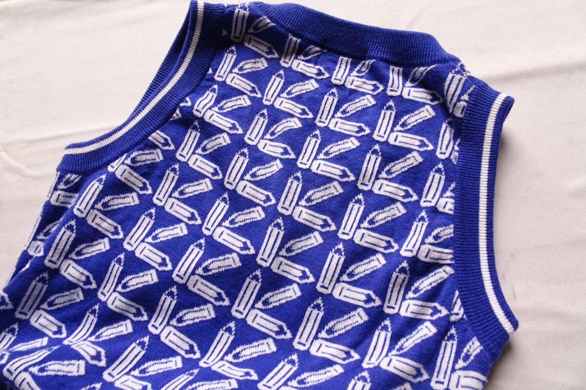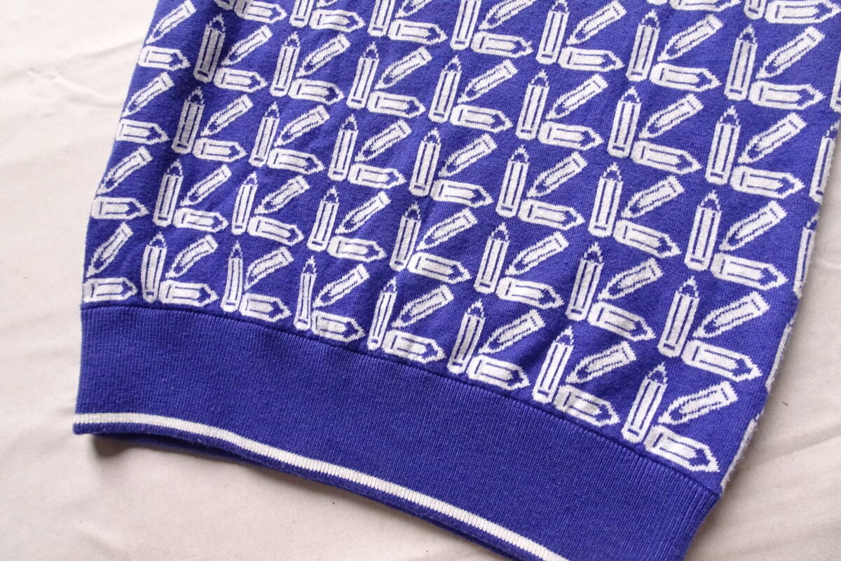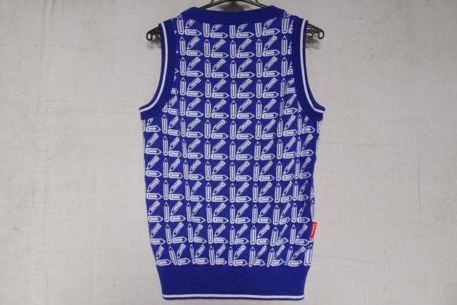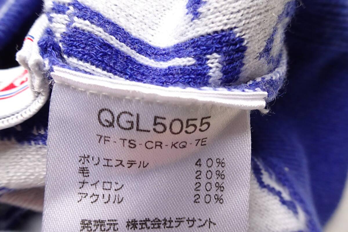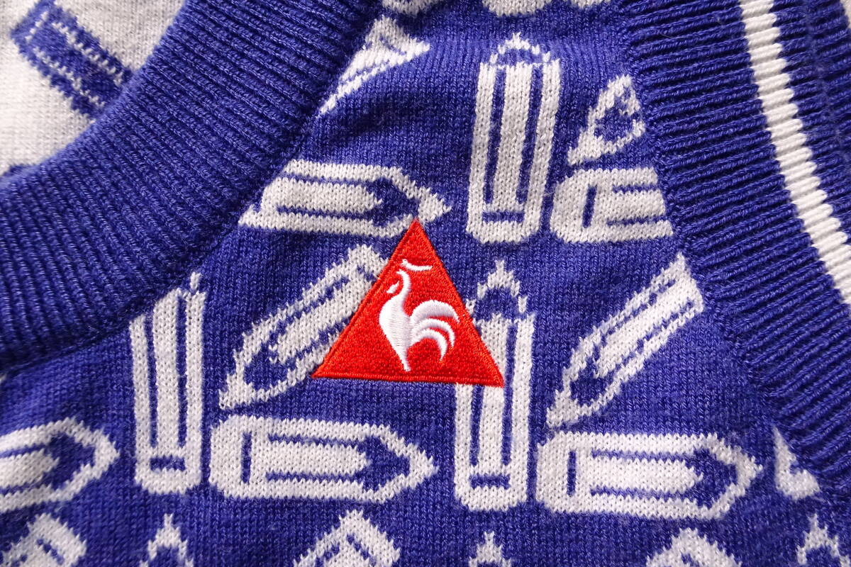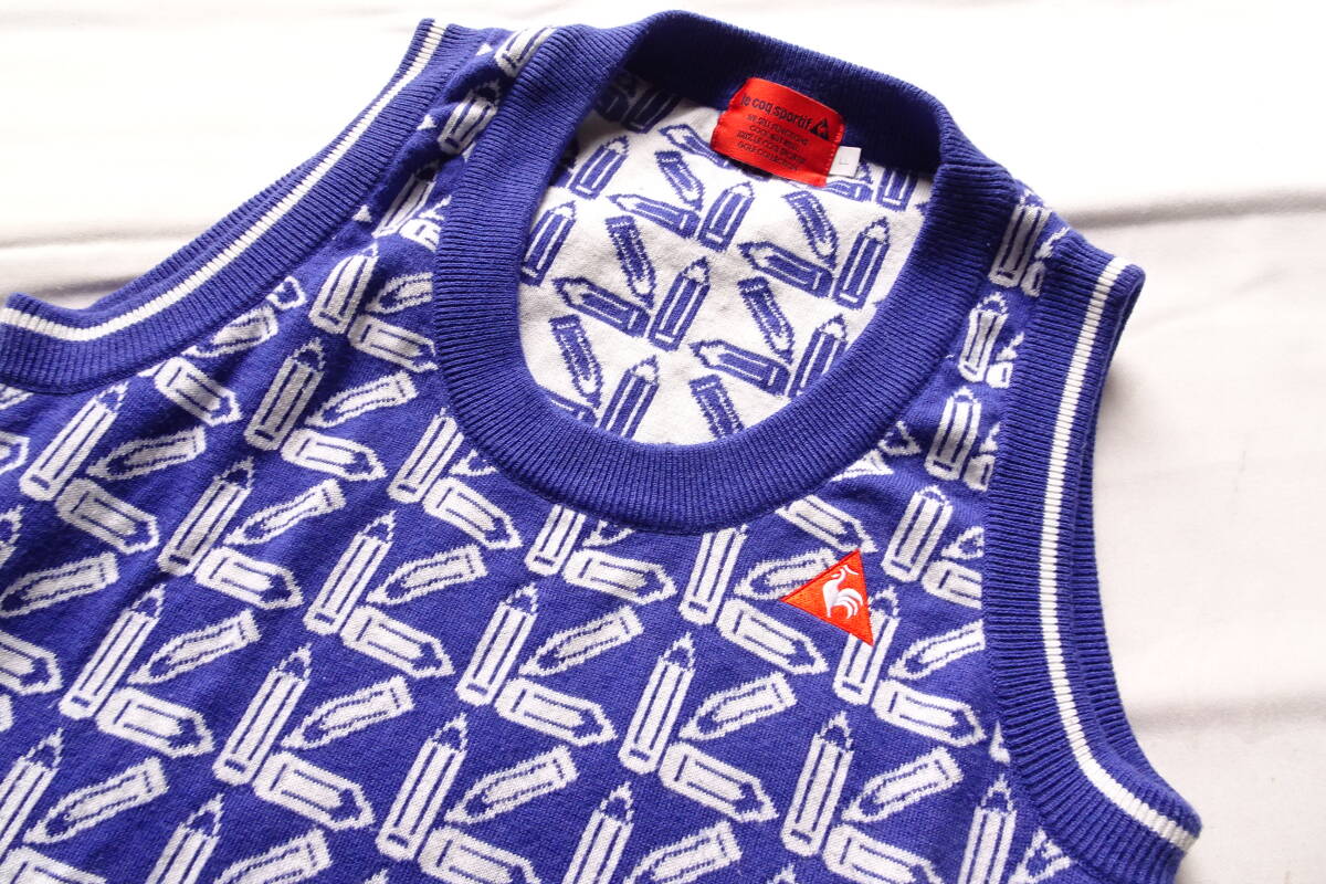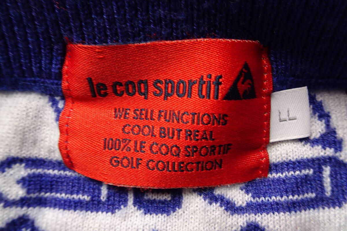 le coq sportif/ルコックスポルティフ/QGL5055/ベスト/ゴルフウェア/ニット系素材/鉛筆柄/Uネック/青紫/白/LLサイズ(5/16R)
