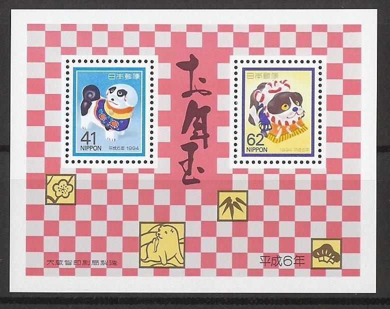 H06 年賀切手 お年玉小型シート 平成6年用 犬