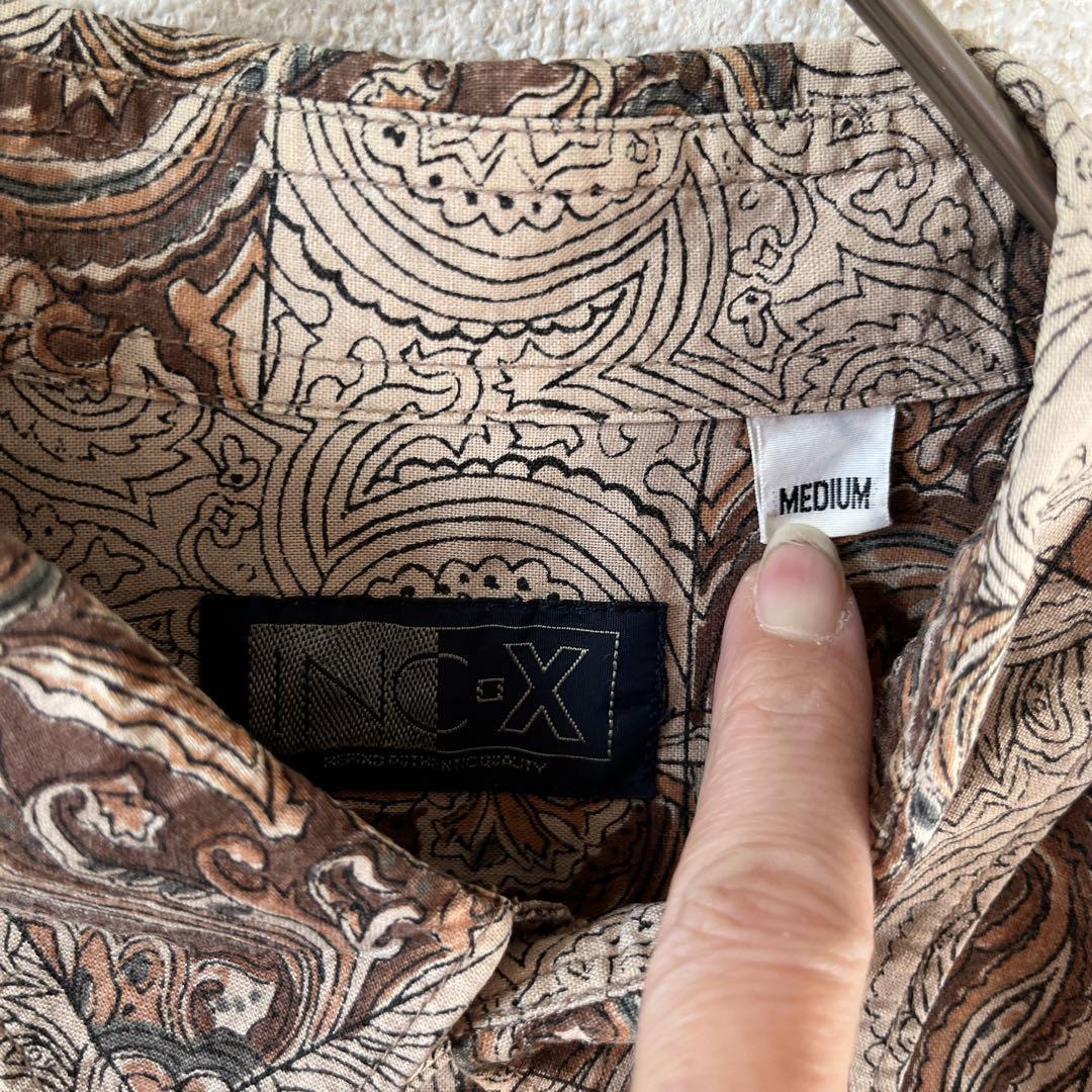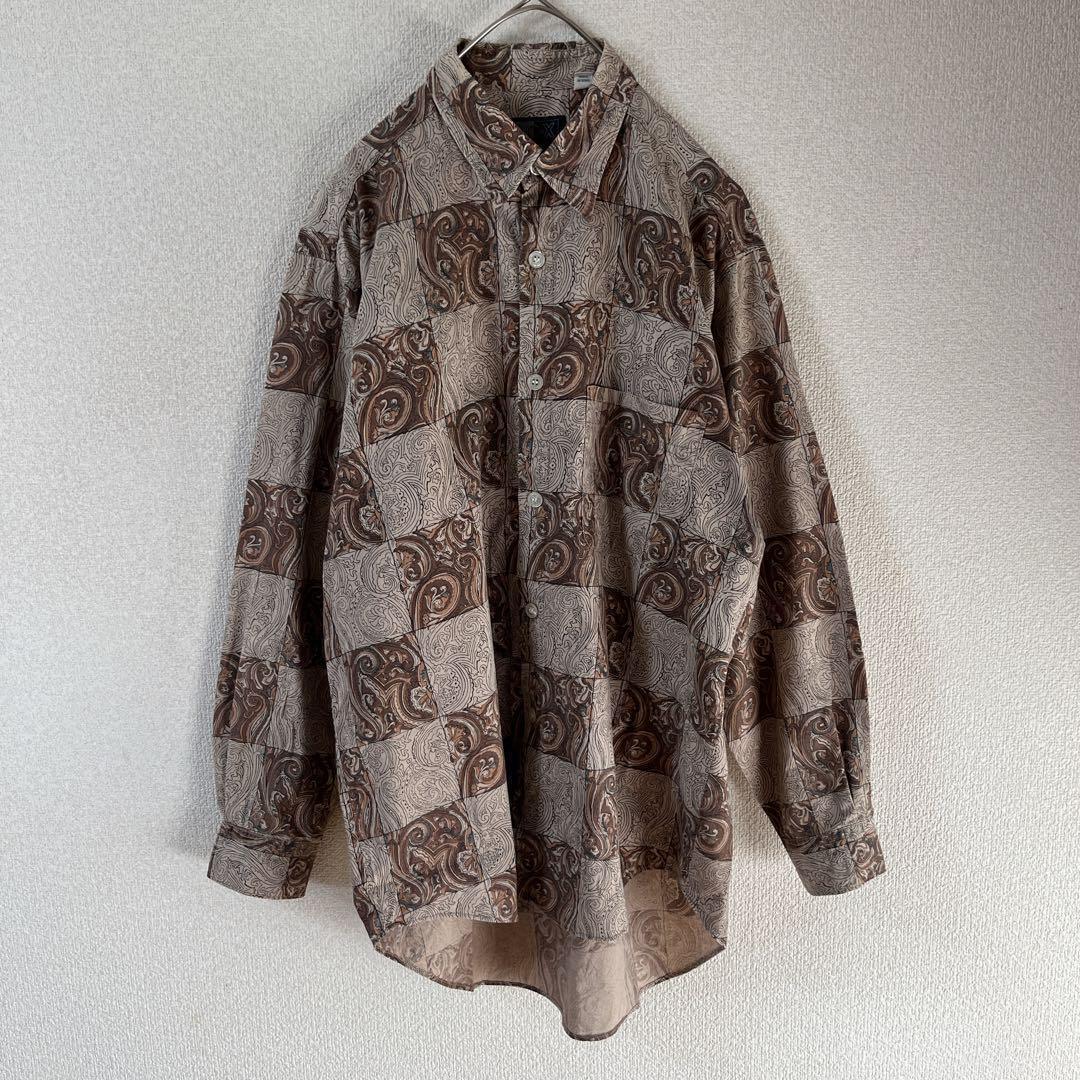 J1デザイン柄シャツ 長袖 ペイズリー柄 パターン柄 Mメンズ