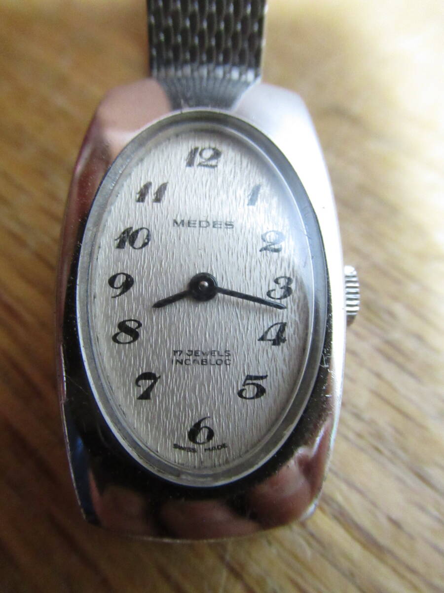 1960年代 スイス製メデス(MEDES)レディース手巻き2針 17石 縦オーバル文字盤 腕周りおよそ16.5cm