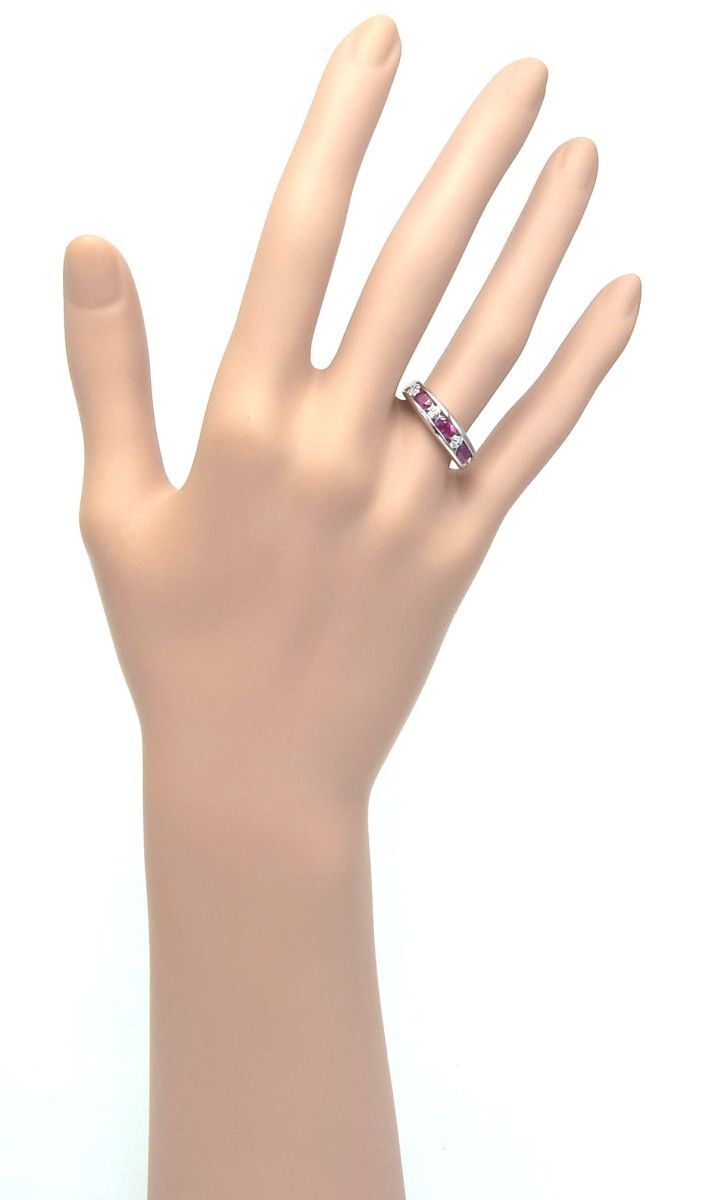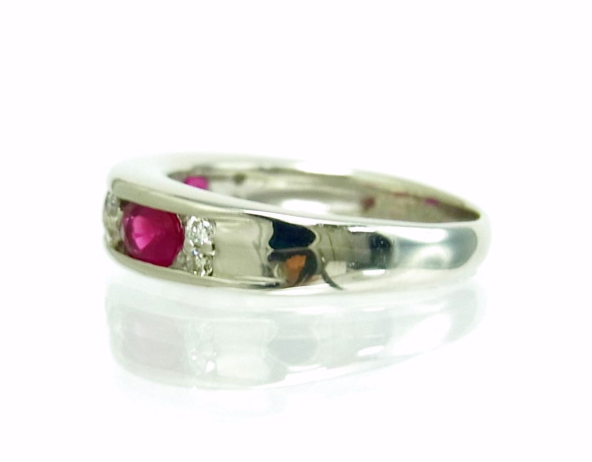 0.3ctの天然ルビーを3石埋め込んだプラチナ製リングです。
