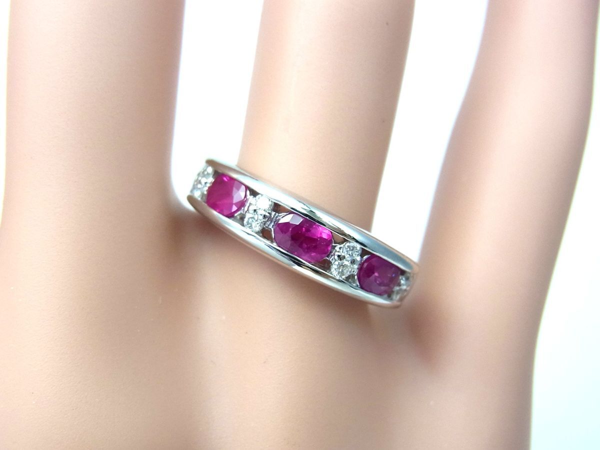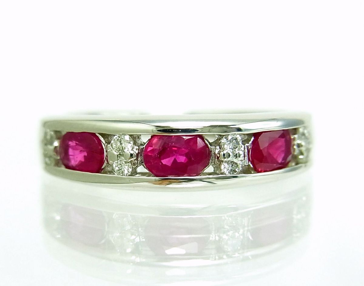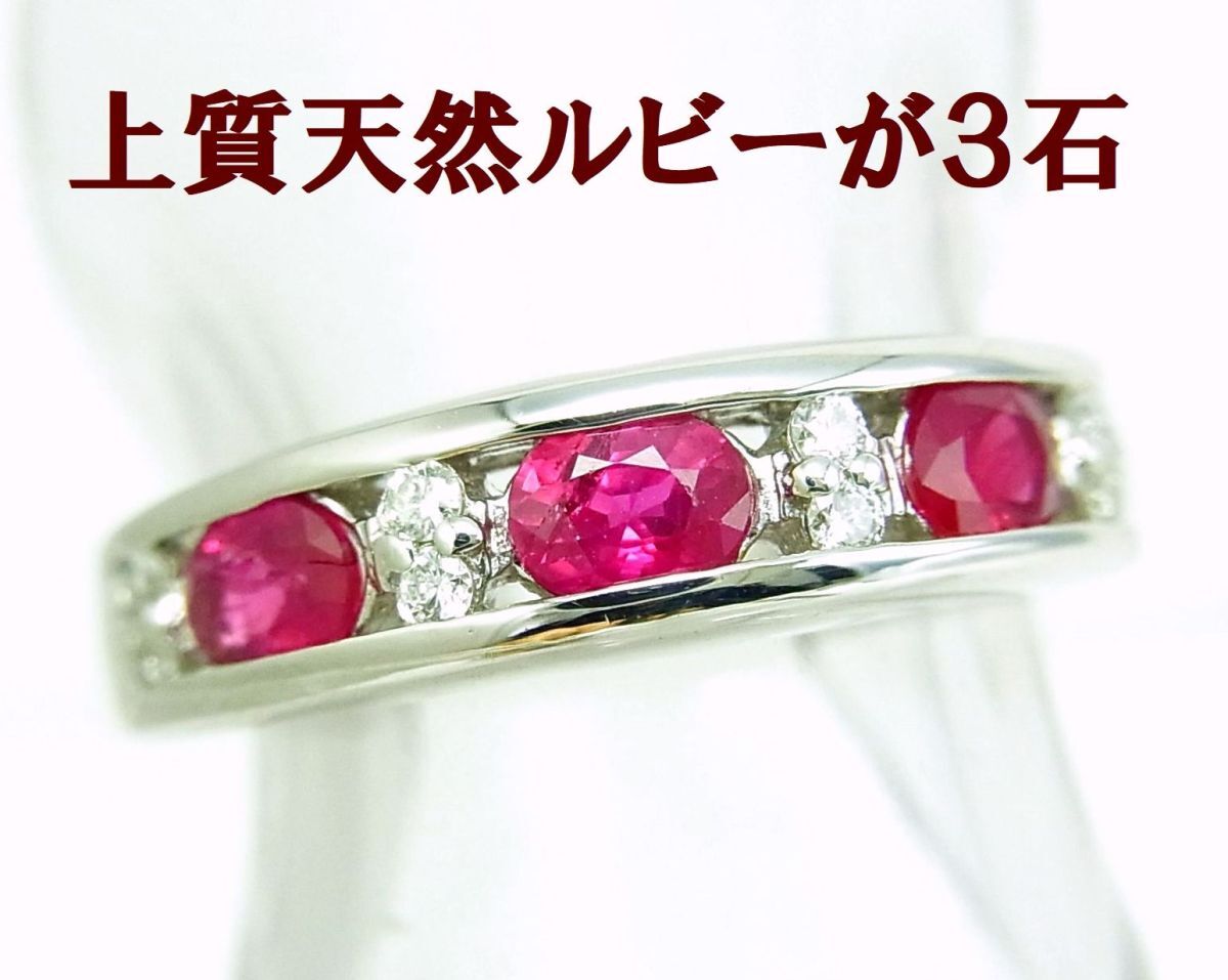上質赤色天然ルビー3石合計0.91ct プラチナ製 シンプルデザインリング 卸価格 商品動画あり 送料込み