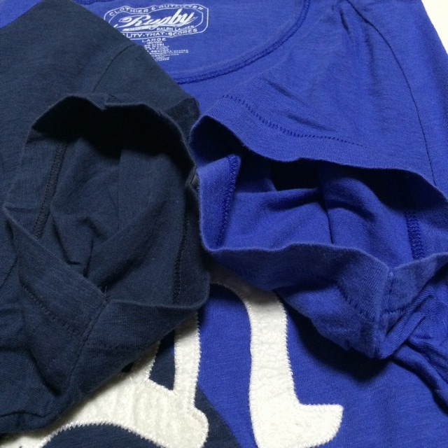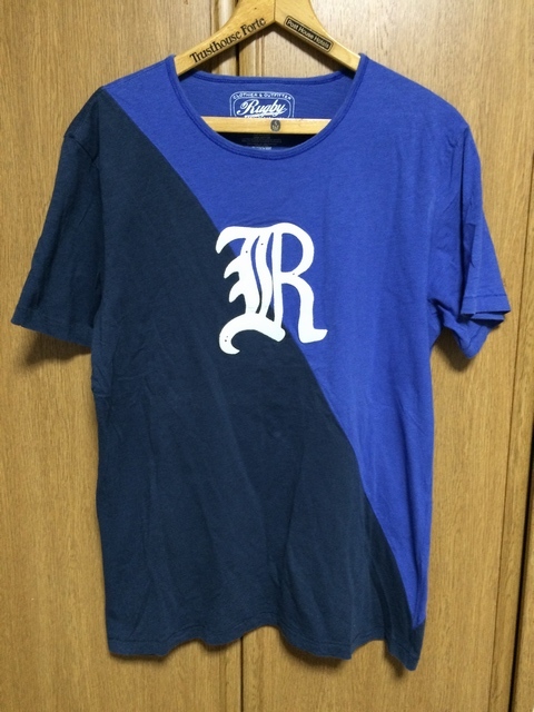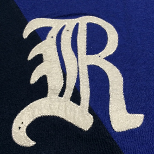 色・柄 | 濃紺と青色の斜め切り替えし、フロントにRのデカワッペン縫付け | |