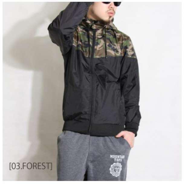 ストリートの定番、迷彩柄に飾ったマウンテンパーカーです。