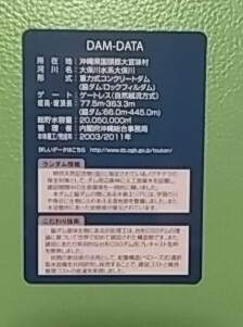 沖縄県のダムカード、大保ダム。Ver.1,1(2017,01)。保護ラップに入れ厚紙で保護してミニレターで発送します。送料85円。カードは4枚まで同梱できます。不明な点はご質問ください。