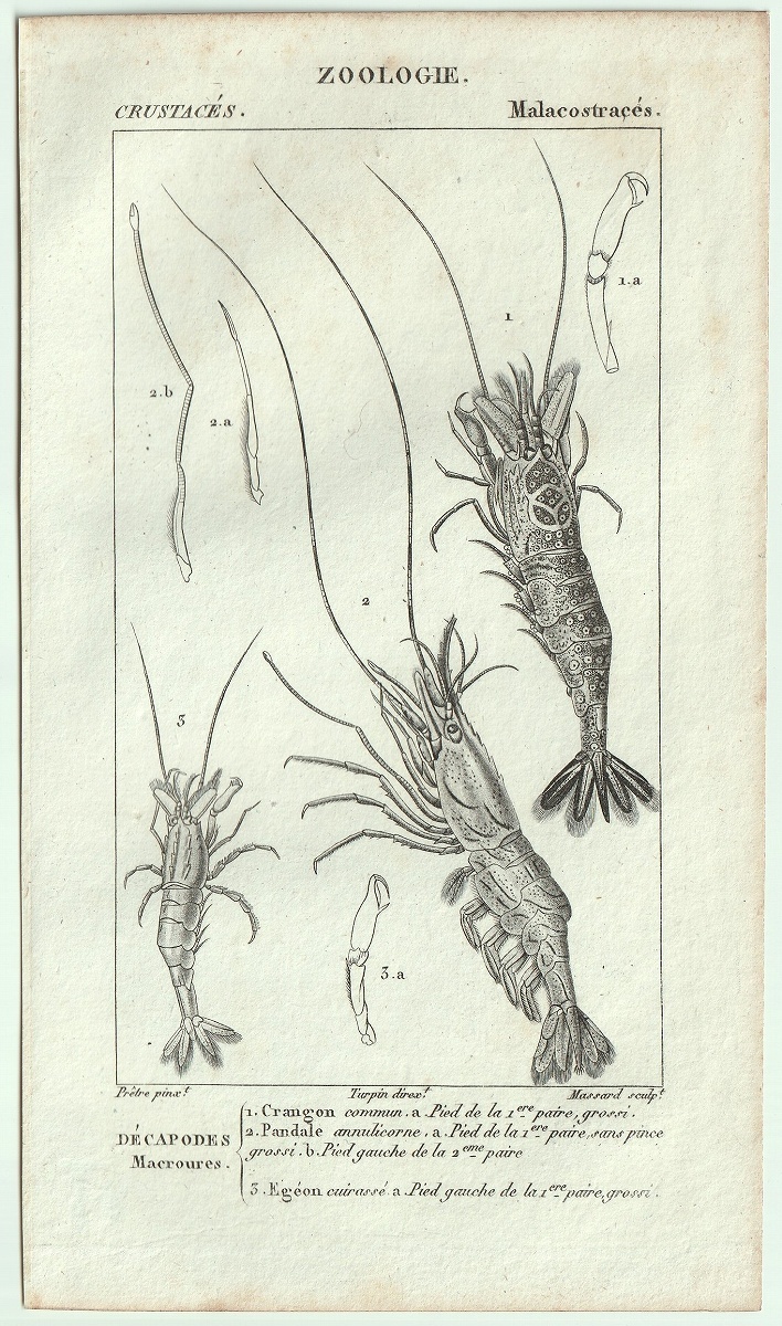 1816年 銅版画 Turpin 自然科学辞典 甲殻類 軟甲綱 エビジャコ科 タラバエビ科 3種 ヨーロッパエビジャコ タラバエビ