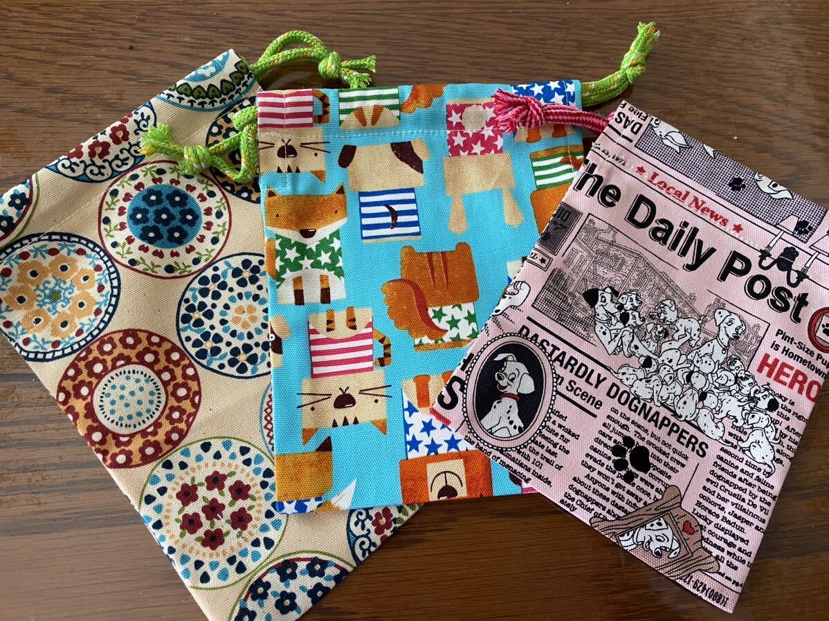 手作りの巾着袋になります。カバンの中の整理にいかがですか。