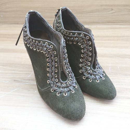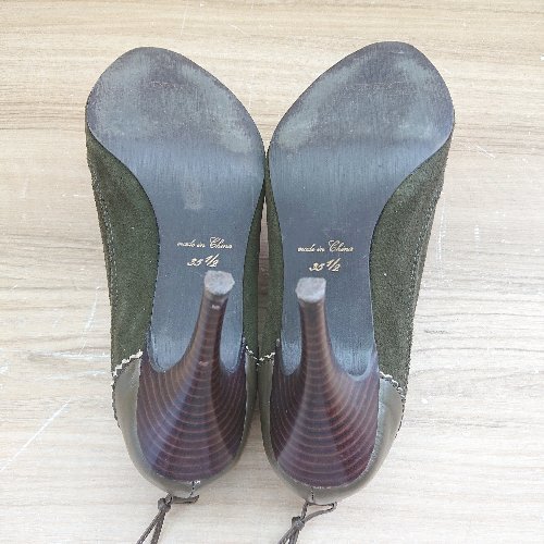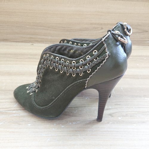◇ SAINT TROPEZ CORPORATION アーモンドトゥ ハイヒール レースアップシューズ サイズ35.5 カーキ レディース E