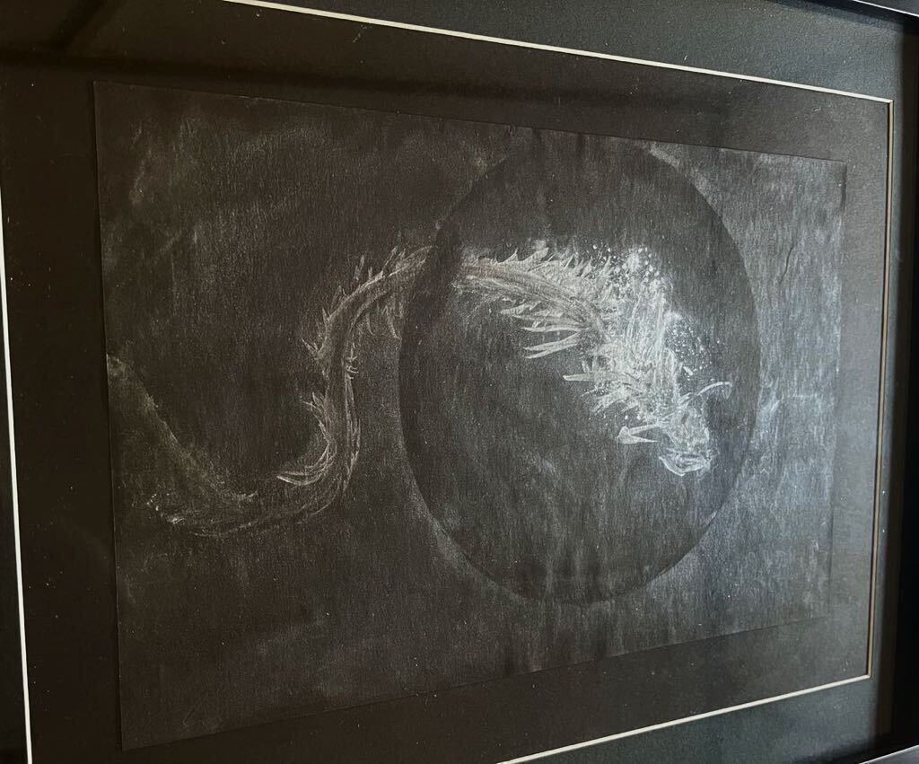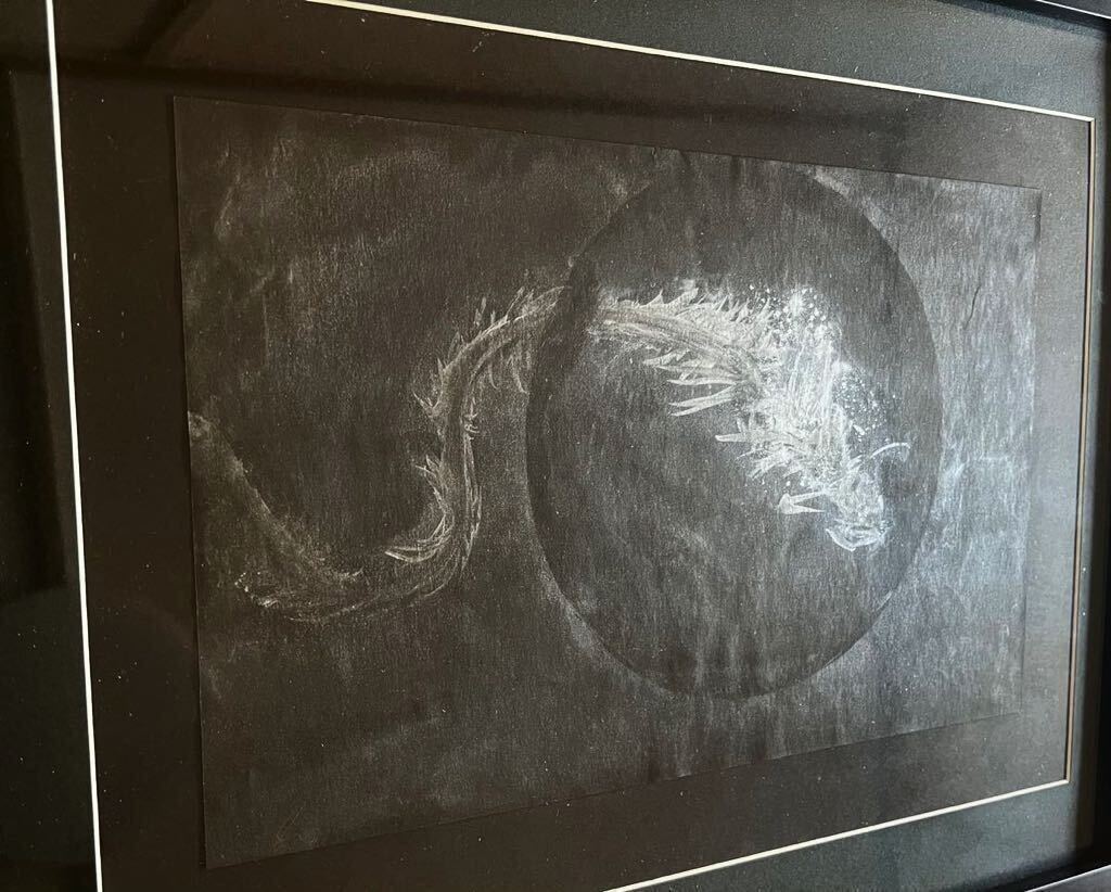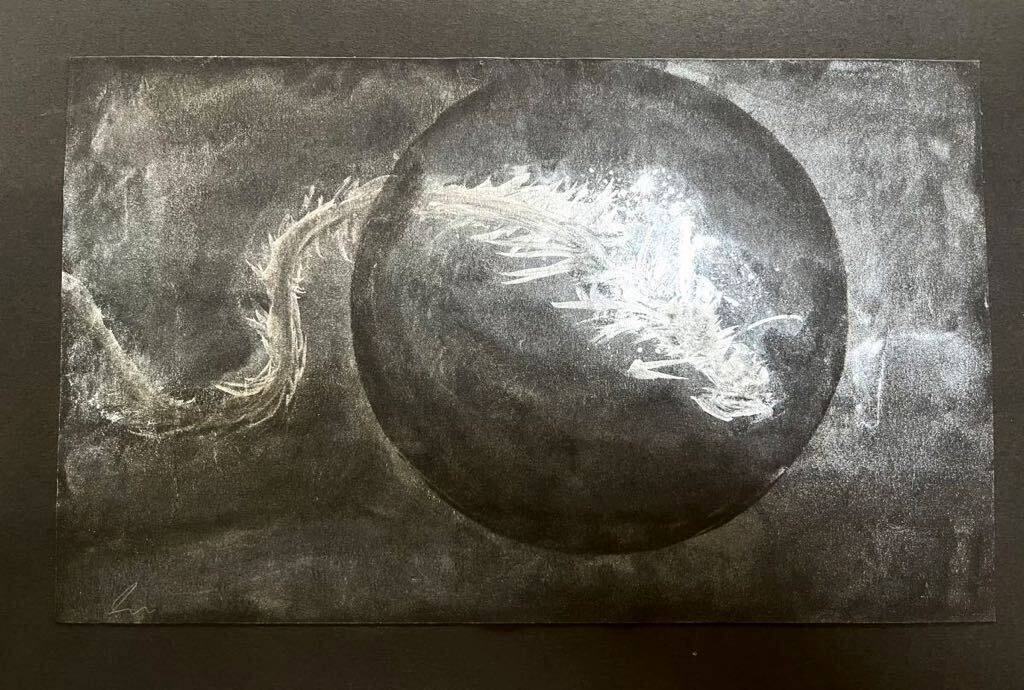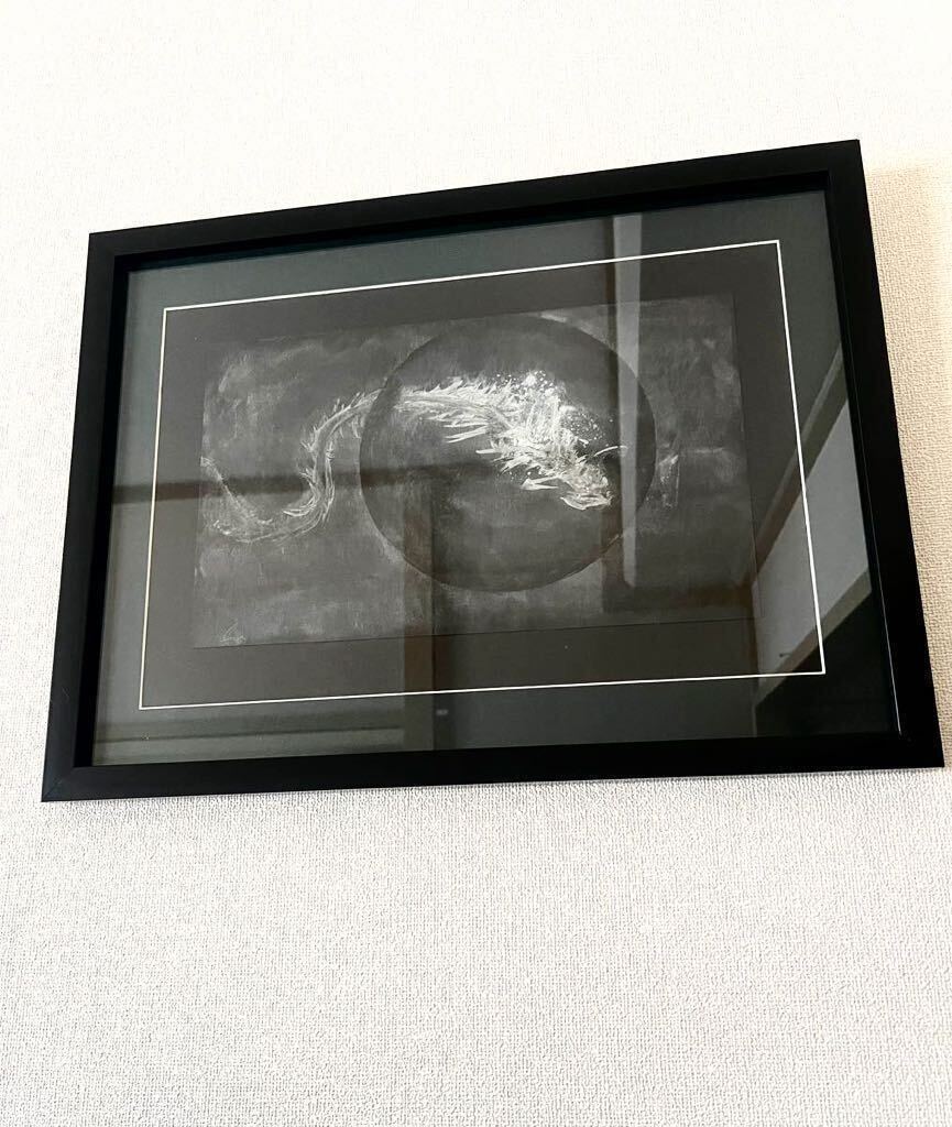 アート作家 Lilaのオリジナル原画「月と金龍、あるいは銀龍」を描いたシリーズの墨象画オリジナルの絵を額装したものです。(原画、サイン有り、印刷物ではありません)