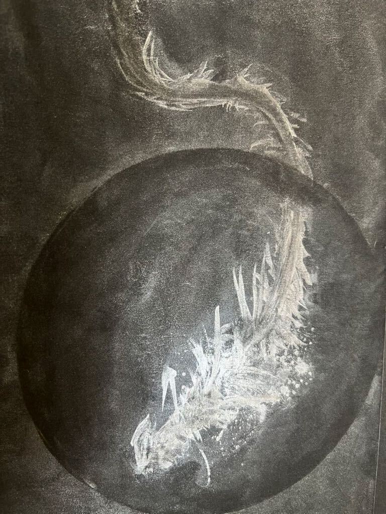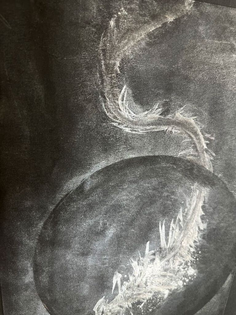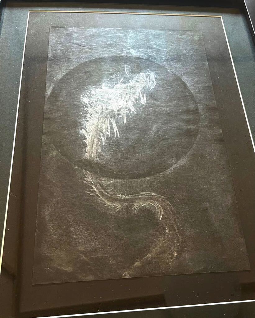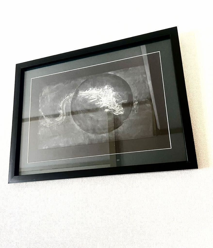 アート作家 Lilaのオリジナル原画「月と金龍、あるいは銀龍」を描いたシリーズの墨象画オリジナルの絵を額装したものです。(原画、サイン有り、印刷物ではありません)