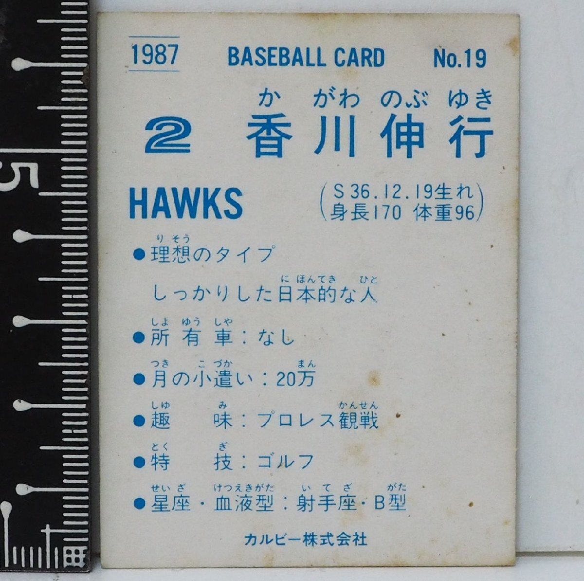 87年 カルビー プロ野球カード No.19【香川 伸行 南海ホークス】昭和62年 1987年 当時物 Calbee おまけ 食玩 BASEBALL【中古】送料込