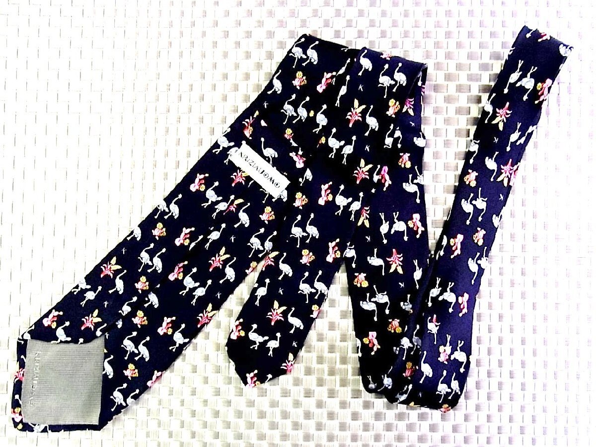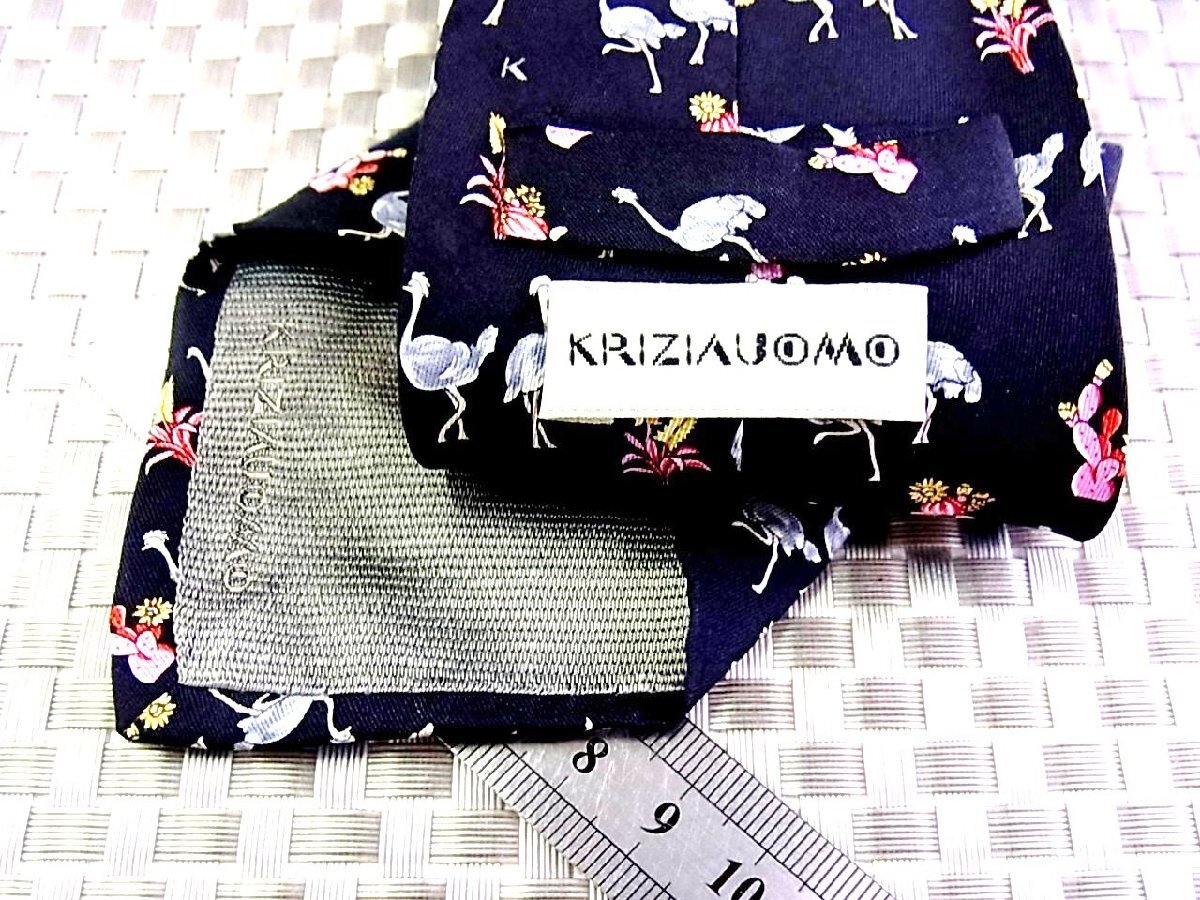 ★RB1195★【ダチョウ 鳥 花 植物 Kロゴ入 柄】クリッツィア【美品】ネクタイ