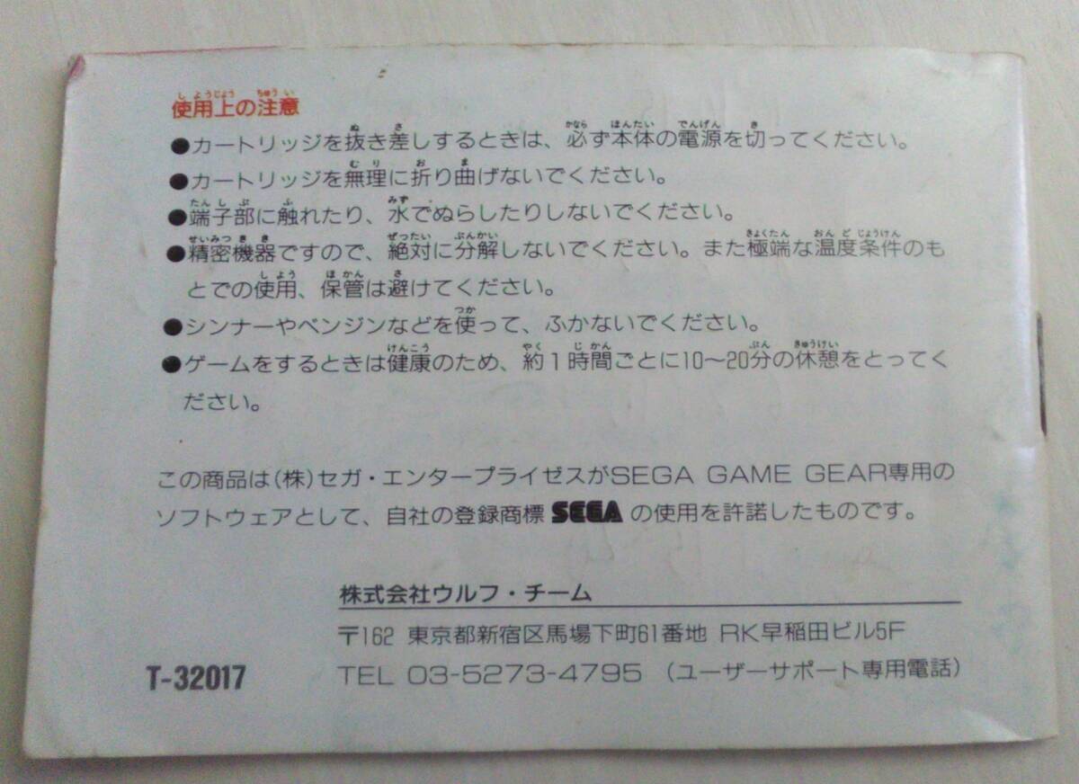 【匿名発送・追跡番号あり】 !説明書のみ! 斬 GEAR ゲームギア