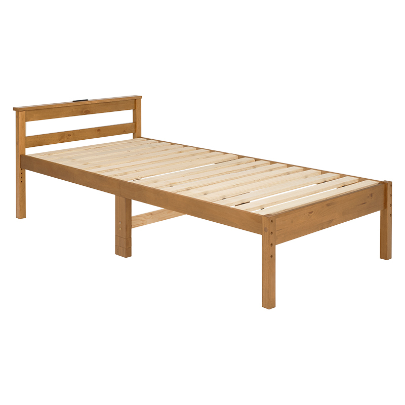 コンセントが便利な宮棚付きの天然木すのこベッド。
