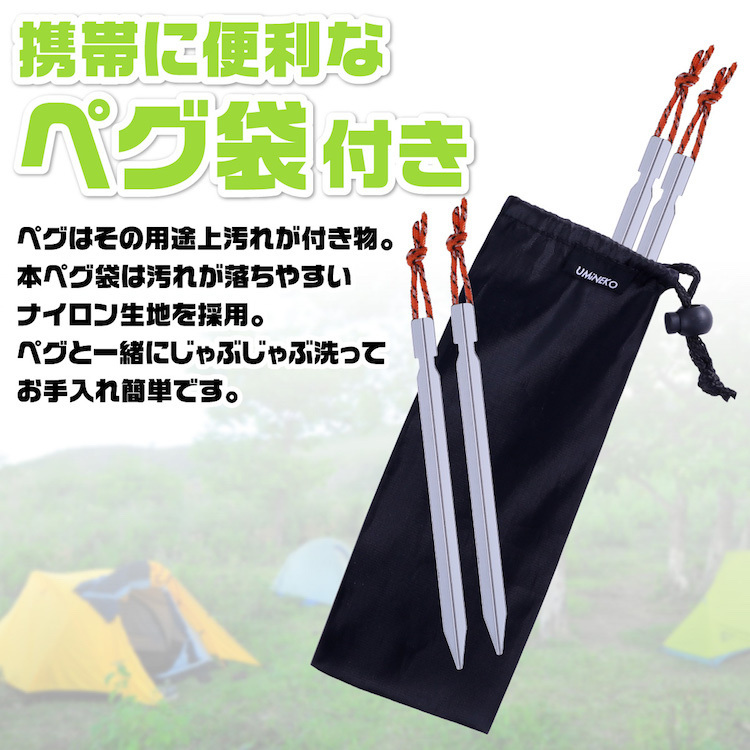 セット内容:ペグロープ付きペグ10本 + オリジナル収納袋