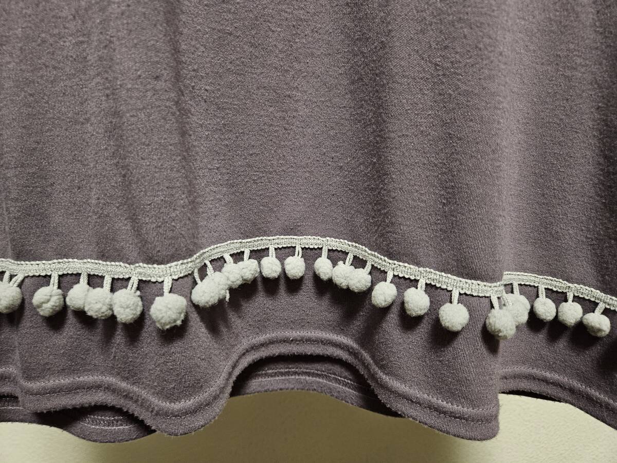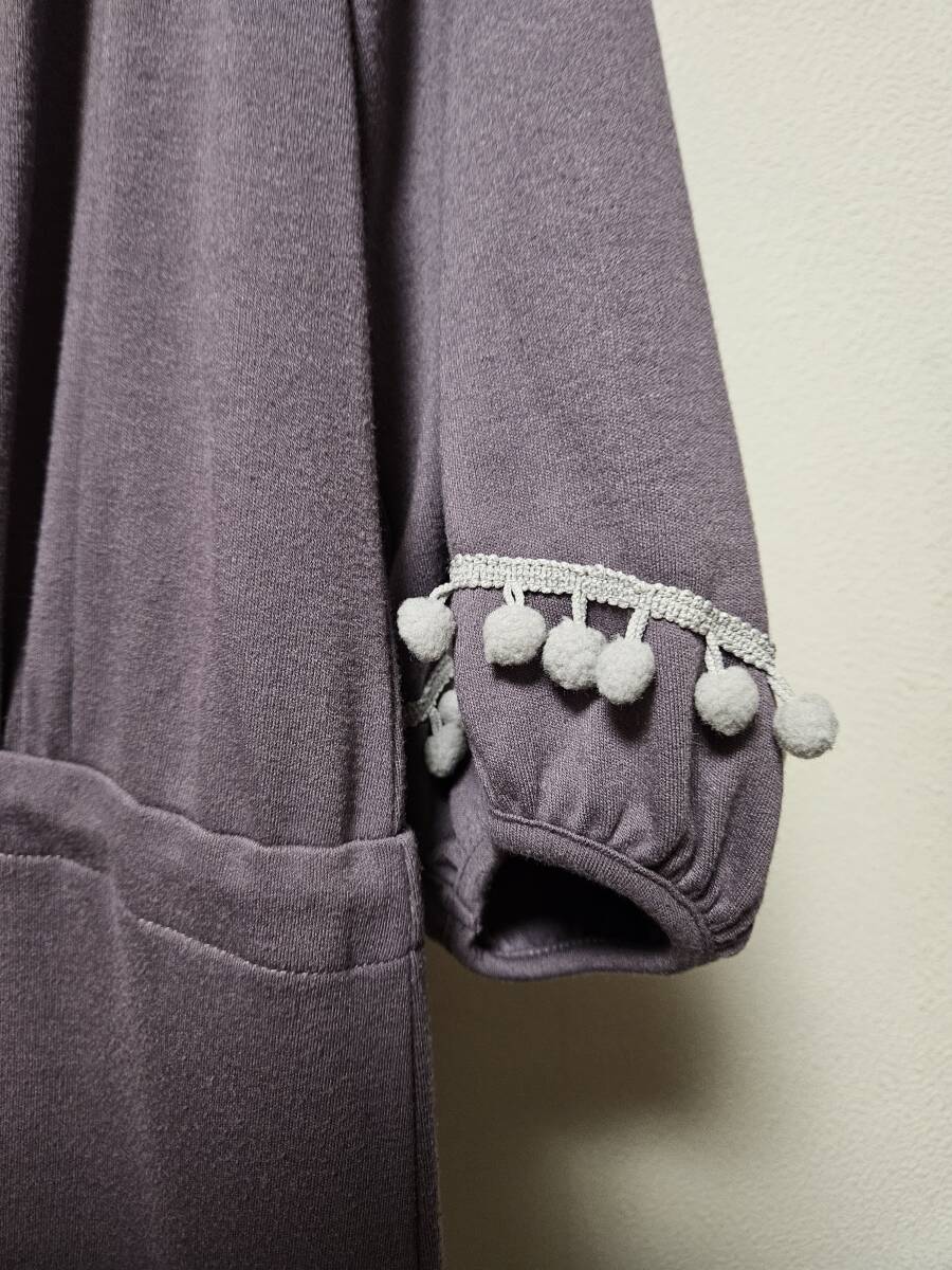 袖先と裾に小さいグレーのポンポン飾りが並んで付いているのがキュートです。