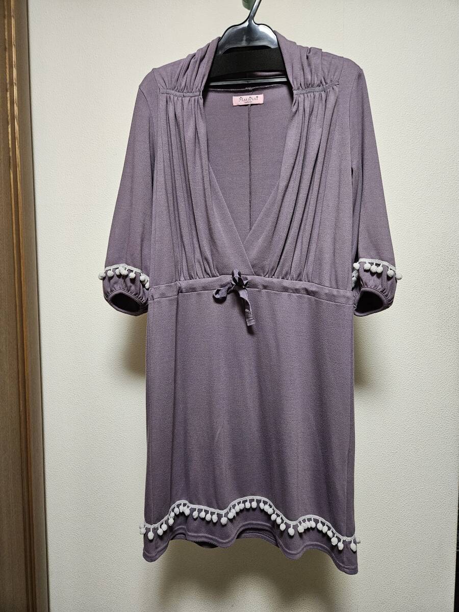 ★Maliani Collection マリアーニ 七分袖ワンピース 藤色 フリーサイズ
