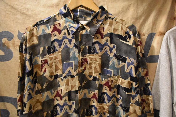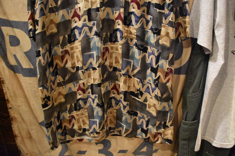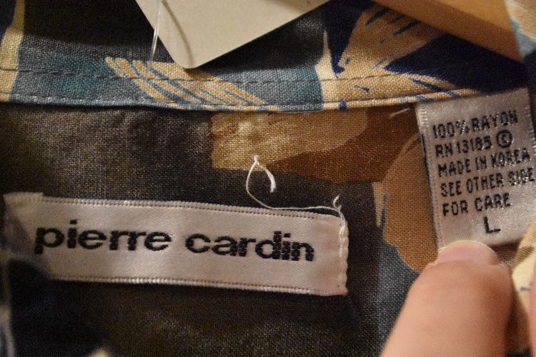 グッドカラー◎90sビンテージpierrecardinボディオールレーヨン半袖総柄シャツL総柄マルチアメカジストリートアウトドア n24236
