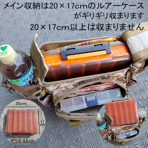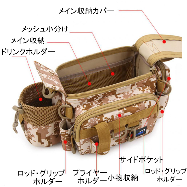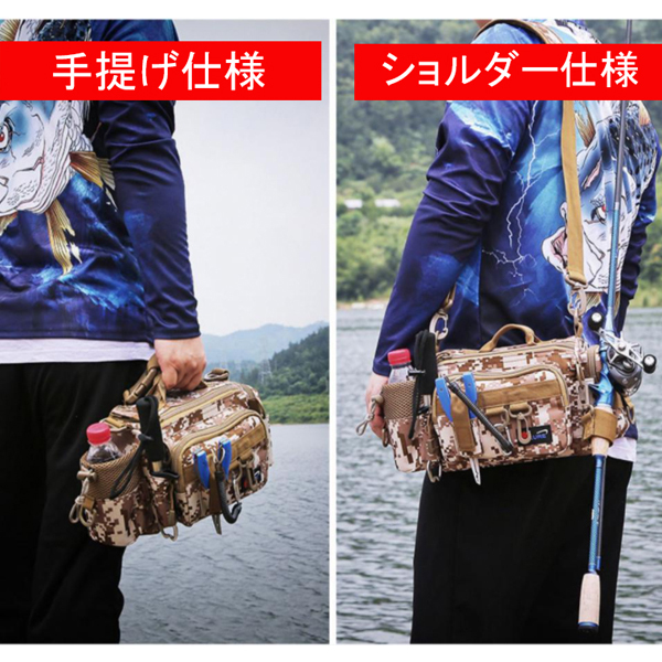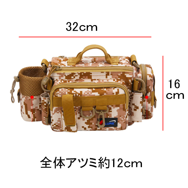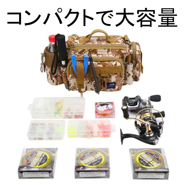 | コンパクトながら多機能なフィッシングバッグです。 ショルダー・ウエスト・手提げと3wayで使えます。 ショルダー+ウエストベルトで安定使用できます。 すべて取り外し可能なので手提げバッグとしても 使えます。 グリップホルダー・プライヤーホルダーも便利! バッグ背面にはベルトループが付いているので ベルトにそのまま装着する事もできます。 取り外し可能なロッドホルダーも付いているので 移動も楽です! ランガンスタイルにもお勧めです。 ルアーケースも収納できるのでアジングやメバリング にもお使いいただけます。 防水生地でドリンクホルダーも付いているので メッセンジャーバッグやアウトドアバッグとしても お使いいただけます。 素材:ナイロン 重量:約360g(本体のみ) ショルダーベルト等を付けると450~550g程度 サイズ:幅約32cm 高さ約16cm マチ約12cm 付属品:ショルダーベルト ウエストベルト ロットホルダー&ロッドガイドベルト 専用箱・説明書等の付属品はございません。 当オークションページのカラーは「ネイビー」です。 他カラーも出品中です。マイオークションより ご覧いただけます。 ※商品画像に写っているプライヤー等は商品撮影 のために使用したものです。付属品ではありません。 ※当店検品済みの発送ですが、海外メーカー 直輸入品のため、若干のほつれ等の縫製の甘さや 配送時のたたみジワ等が生じる場合がございます。 | |||