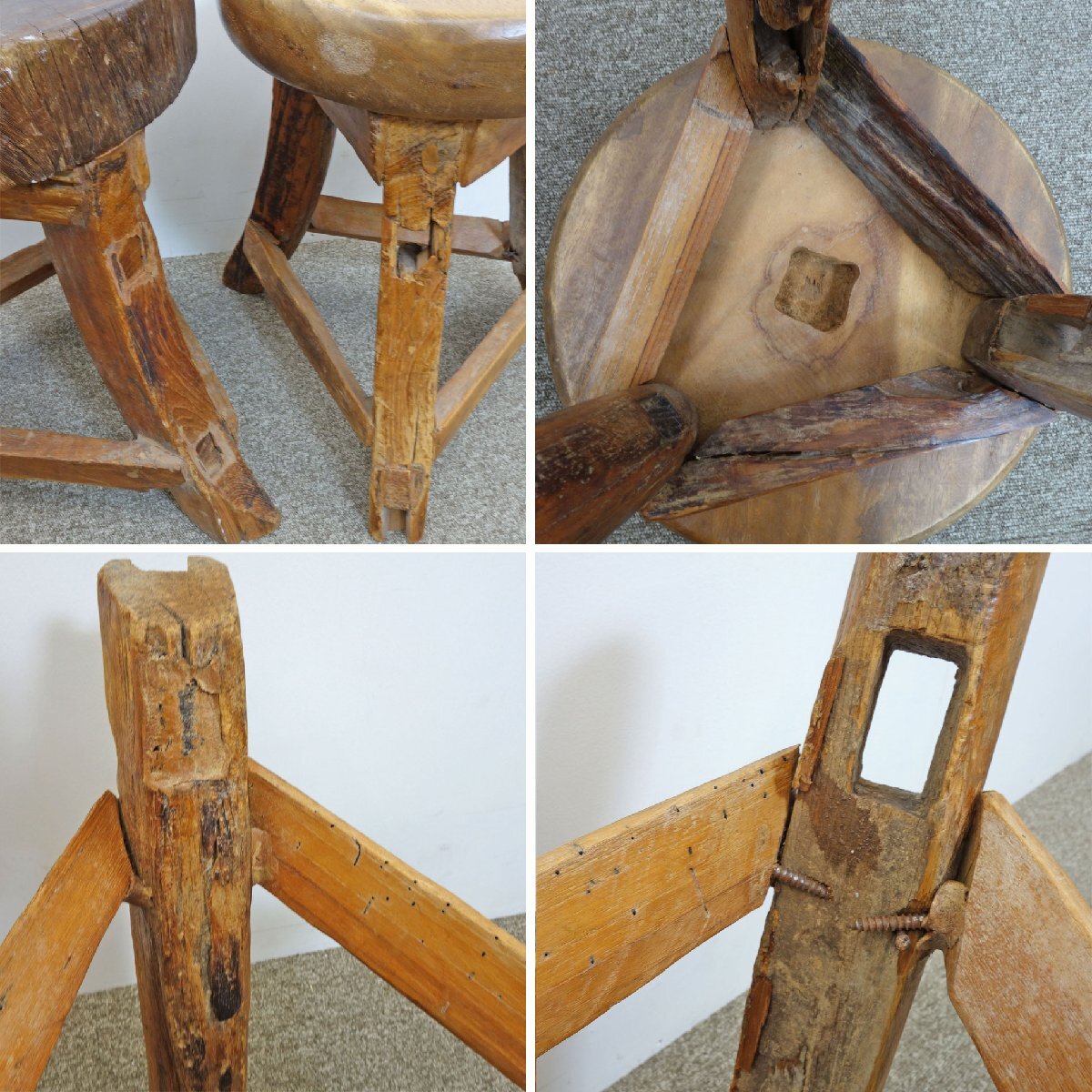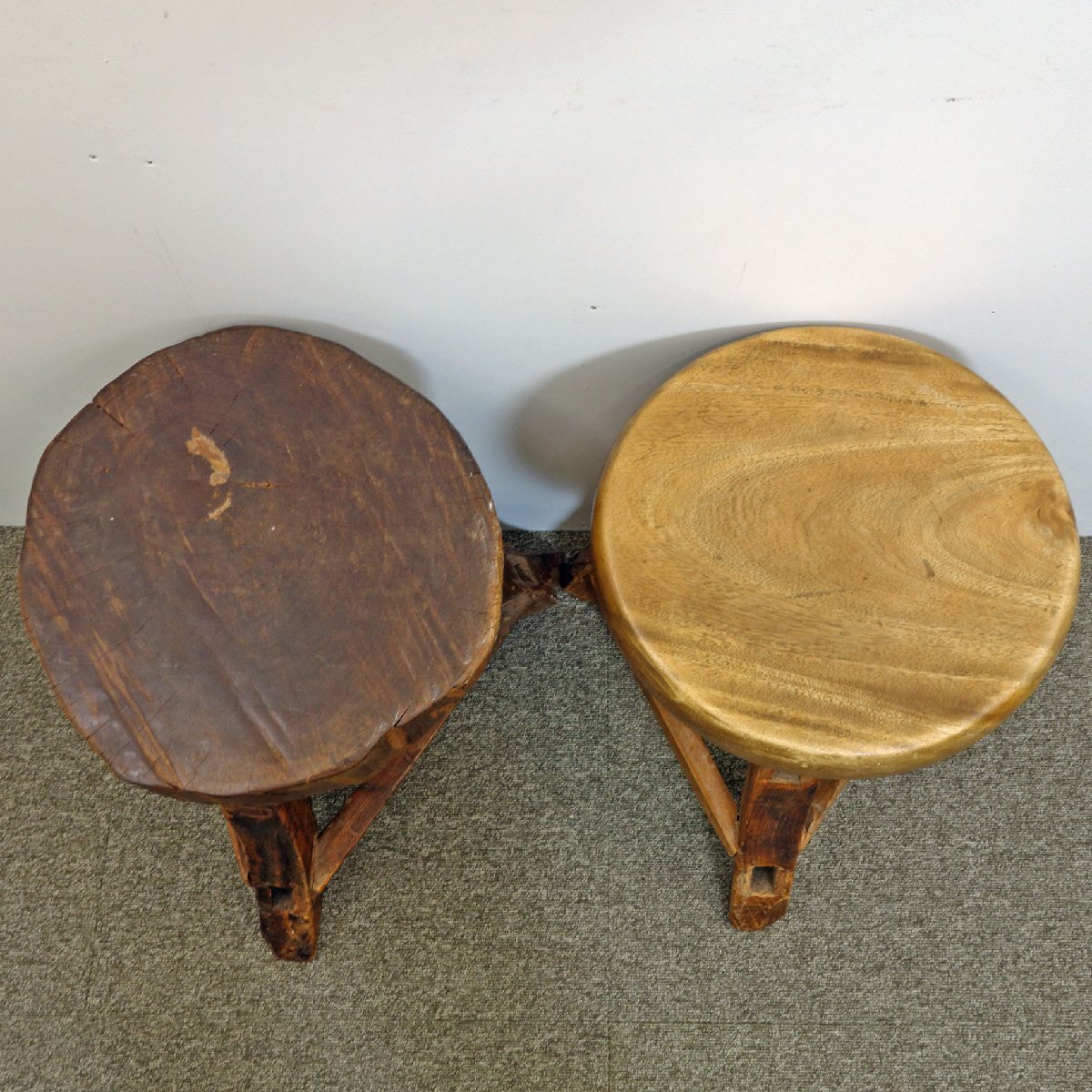◆写真右側のスツールは、座面素材、ネジや接着剤の補修箇所あり。画像をご参照ください。