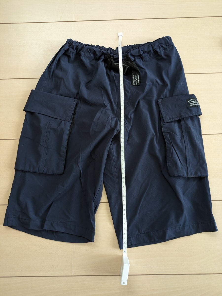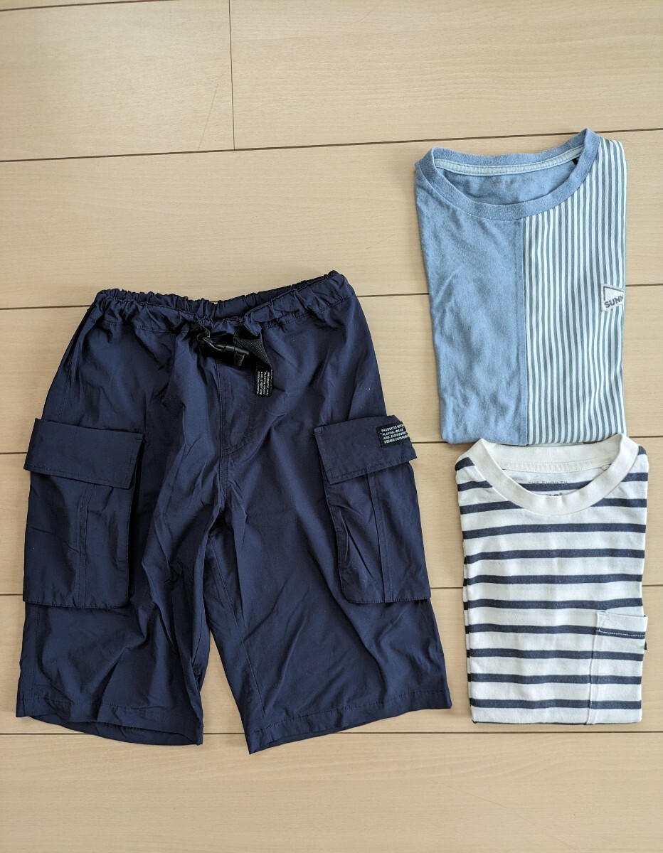 150センチの水色のTシャツ(使用感あり) 150センチの紺色ボーダーTシャツ(使用感あり) 150センチのハーフパンツ(比較的きれい、お尻下や腿の裏側辺りにわずかに引っ掛けあり(個人的には気にならない範囲)、すぐ乾きそうな素材) 以上各1点の合計の3点です