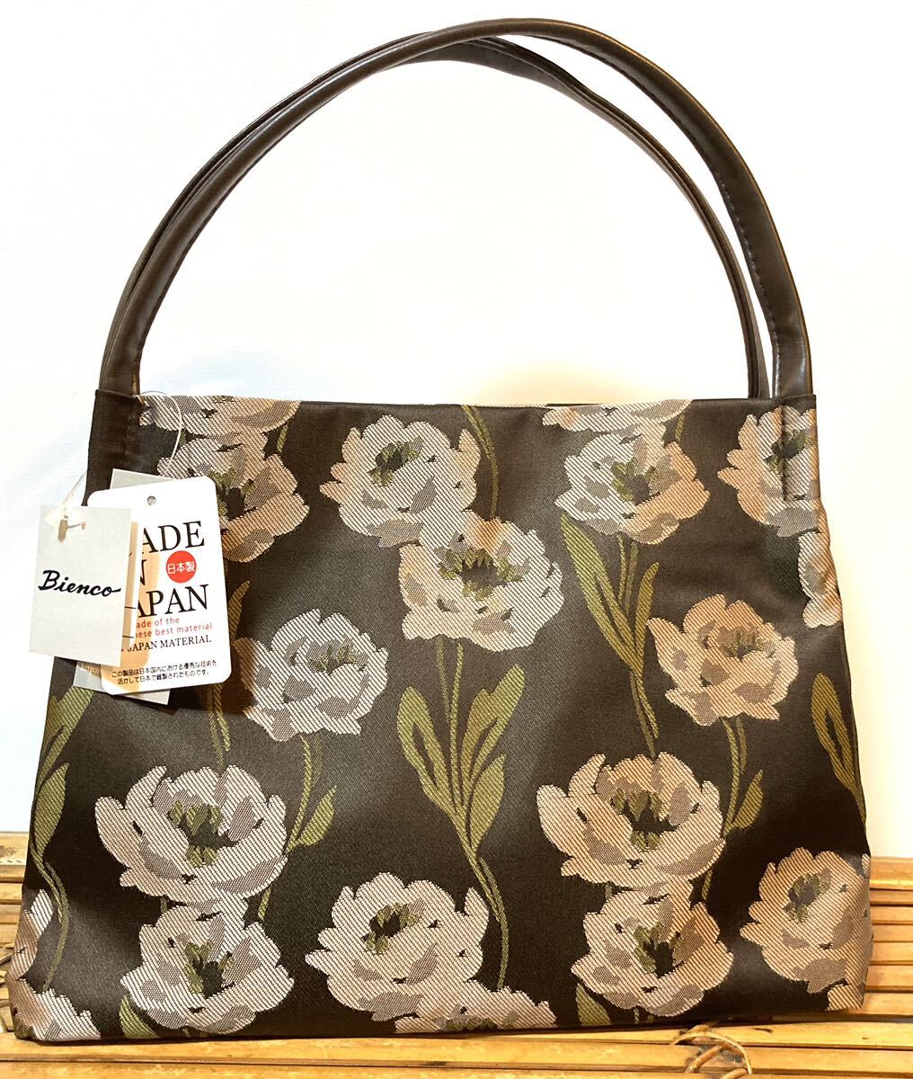 送料無料♪新品タグ付!ギフトにも【Bienco】ビアンコ  *トートBAG* ブラウン花柄  マチ広・軽量♪  CHA-CA.