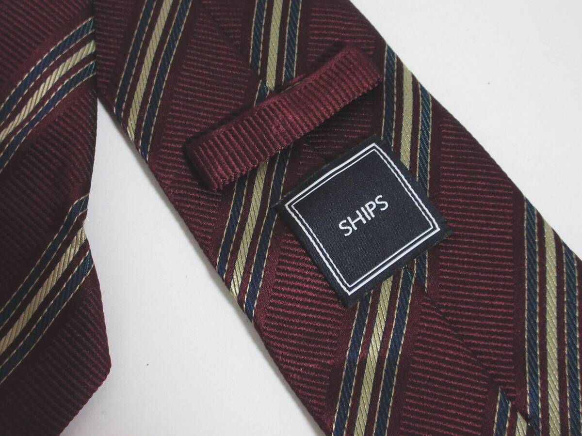 SHIPS シップス レジメンタルストライプ シルク100% ネクタイ ボルドー yg5744