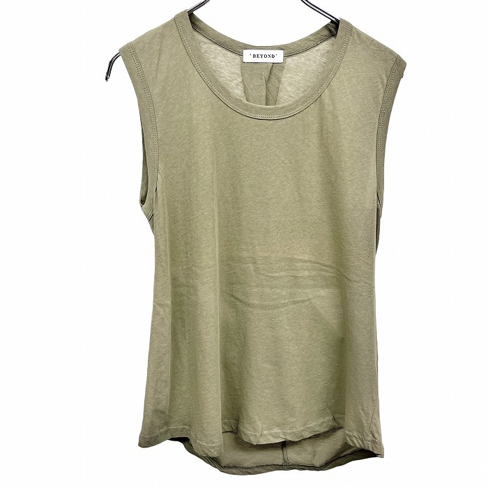 商品タイトル | ビヨンド タンクトップ 無地 後ろツイスト 背中カットオフ ノースリーブTシャツ 綿×ポリウレタン ヘザーグリーンカーキ 緑 レディース |