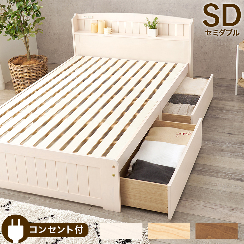 引出し付セミダブルベッド MB-5039SD-WS ホワイトウォッシュ