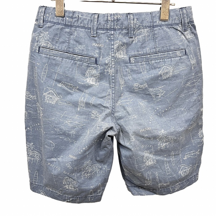 商品タイトル | ギャップ GAP テーパードショーツ ショートパンツ ハーフパンツ 海 ヤシの木 船 ハワイ HAWAII 綿100% 28 ヘザーブルー 杢青×白 メンズ |