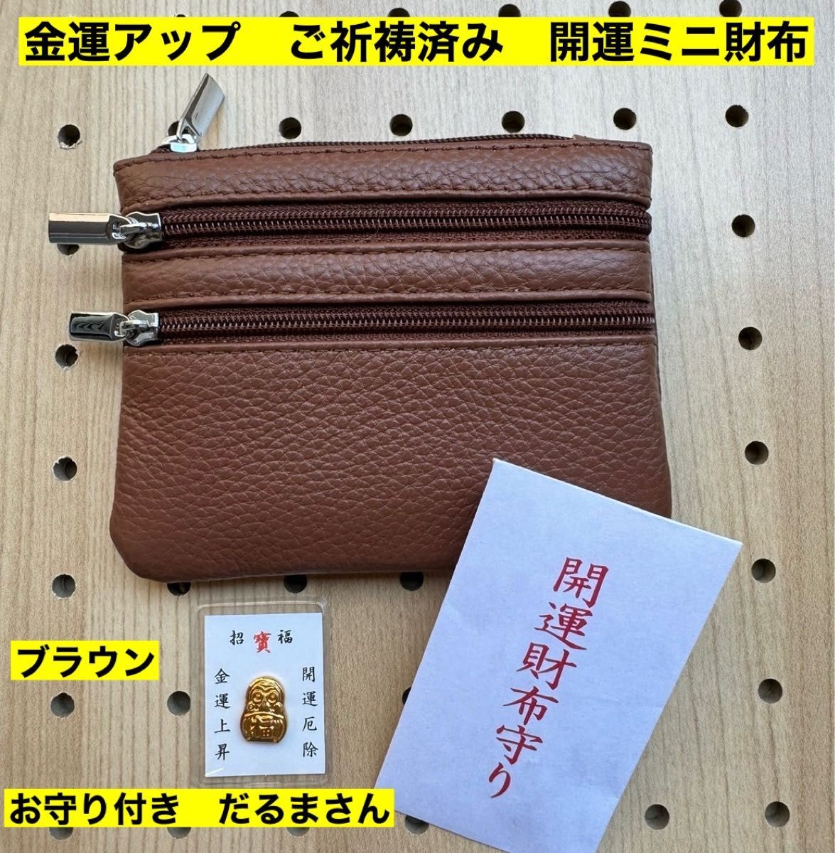 金運アップ 牛本革 開運ミニ財布 ブラウン だるまさん ご祈祷済み 達磨 小銭入れ コインケース 高天原本宮 財布 新品 未使用